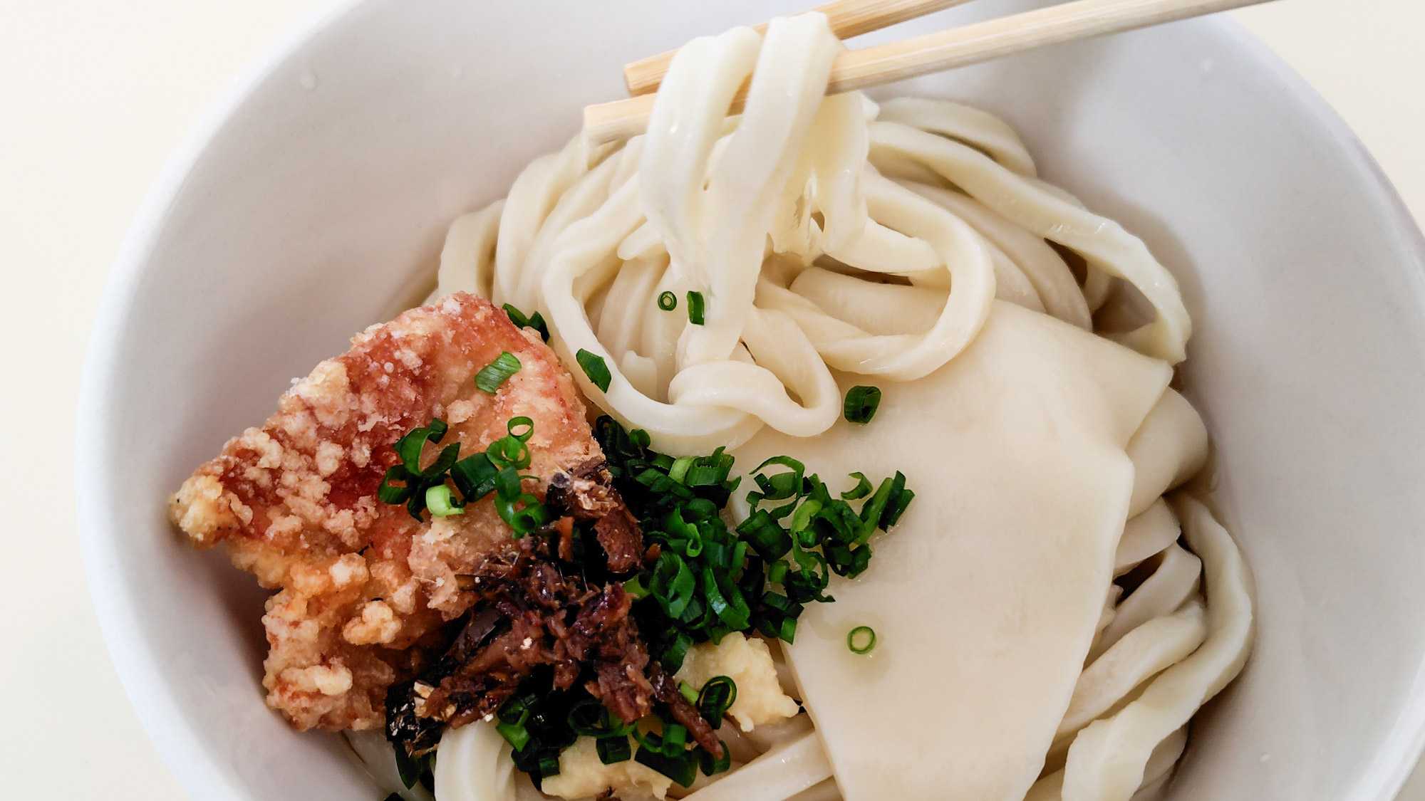 昨日の昼は、丸亀市のうどん屋の跡の跡に先週末にオープンしたUDON ROOKIE。かけ大550円に小さな鶏唐120円。