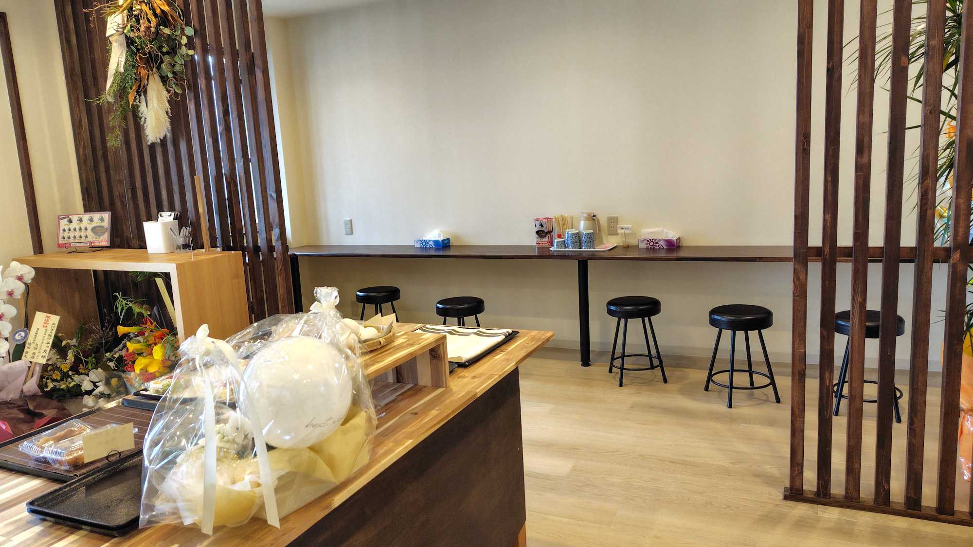 昨日の昼は、丸亀市のうどん屋の跡にオープンした、おにぎり豚汁 三ッ丸。イートインとテイクアウトとも入口のカウンターにある注文票に書いて窓口に持って行き精算し、番号札を受け取る。