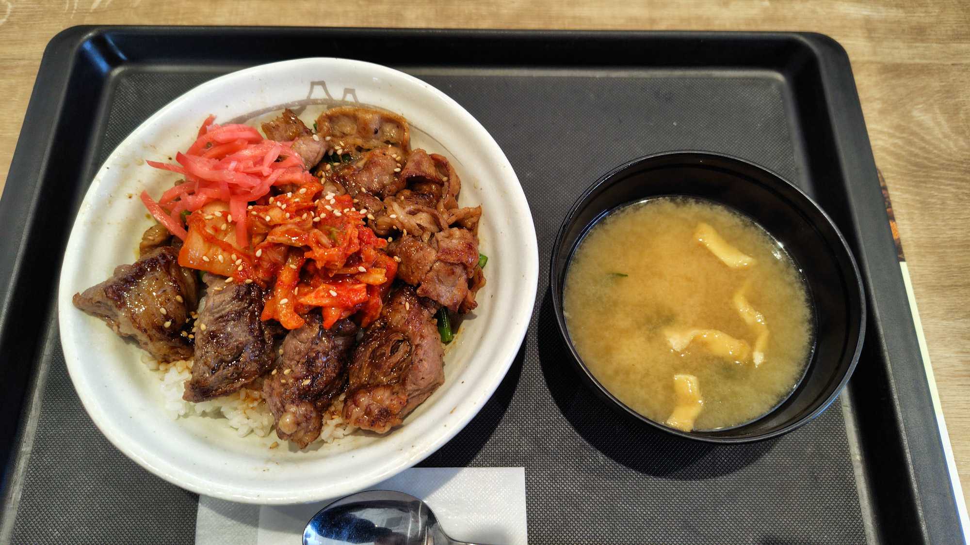 昨日の昼は、松屋の3店併設店。期間限定のカルビと特選ブリスケット肉の合い盛り丼1180円。