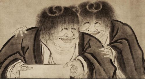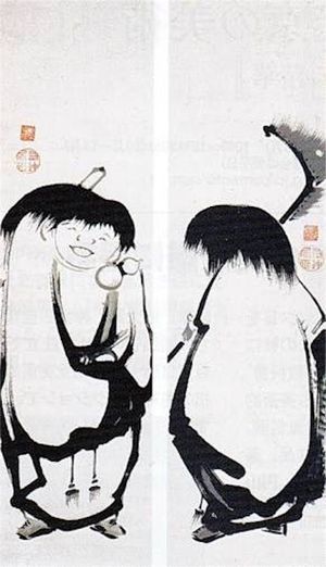 前回、中国の寒山寺のお話を取り上げましたが、このお寺の開祖は寒山とされています。 7世紀、唐の頃にいたとされる「寒山」は風狂の修行僧。 山にこもり乞食同然の生活をしながら、寺で働く拾得(じっとく)と共に、僧をからかい、 奇声を発したり放歌高吟したりと二人して奇行を繰り返しながらも何百もの詩を残し、 後には禅の体現者、仏の化身として敬われます。 ![]() <寒山寺の詩とペアで売られている寒山拾得図> この二人は「寒山拾得図」として後世の画家が好んで取り上げてますが、どの絵を見ても 異様で不気味に描かれてます。私も昔から一体なんだこいつらは、と気になってました。 ![]() <雪舟の寒山拾得図> あるとき森鴎外の短編にあるのを見つけて読みましたが、ますますわからなくなりました。 そのストーリーはと言うと、昔、唐の頃に役人がいて、頭痛を治してくれた不思議な僧に 会いに行くと留守だったので、紹介された菩薩の化身という寒山と拾得にうやうやしく 挨拶すると、二人はゲラゲラ笑って走り去るという、ただそれだけの話。 わけわかりません。 この話にはネタ本があります。寒山や拾得の詩500余りを集めた「寒山子詩集」の序文です。 鴎外はこれをほとんど加筆なしに短編小説に仕立てています。しかし物語は途中で唐突に 終わっていて、人々は皆面食らいます。 禅の世界は問答無用、と言わんばかりのぶっきらぼうな扱いです。 しかし原書にはその後日譚も書かれていて、寒山拾得が壁や木切れに書き散らした落書きを 集めると立派な詩集が出来上がり、彼らの真理を会得したというふうな結末となってます。 ![]() <北斎の寒山拾得図> 鴎外はこういった昔の物語を仕立て直すのが好きなようで、「山椒太夫」もそうですね。 しかし彼の「高瀬舟」はとてもよかった。江戸期の役人の手記が元ですが、これはとても しんみりと心にしみる素晴らしい名作だと思います。 井伏鱒二や芥川龍之介の「寒山拾得」は全く違う扱いで、寒山拾得の強烈なキャラクター に取り付かれる現代人を描いてますが、そんな気分、なんとなく分かるほどインパクトある 寒山と拾得です。 ![]() <京都のコーヒーハウス拾得> しかしながら、寒山拾得といえば、私は真っ先に京都のライブハウス・拾得を イメージしてしまいます。というか、この店のおかげで寒山拾得に興味を持った 正式にはコーヒーハウスと称してますが、かっては蒼々たるミュージシャン達が ここを巣立って行き、西部講堂、円山音楽堂と並んで京都の音楽のメッカでした。 もちろん今も現役で頑張ってますが。 それにしても私は今までずっと「じゅっとく」と呼んでましたが違いました。 お店のHPに下記のように書いてありました。恥かしい。 <拾得は「捨得」とは書きません。「じゅっとく」でなく「じっとく」と読みます> つまり捨はすてる、拾はひろう、で正反対の言葉でした、なので今までは「捨てて得る」 などとと呼んでいたわけです。寺に拾われた子供なので「拾って得る」なんですね。 僧たちの食事係だった拾得は残飯を集め、山に住んでいた寒山を養い、共に遊び かつ詩を読む。このライブハウスもそんな無名のミュージシャンを集めて共に伸びる という意味で、この名を選んだのではないかと、勝手に合点しています。 寒山と拾得は現代にも啓示を与える存在のようですね。 そう考えると悪趣味な描き方でなく、童子のような清らかな存在としてこの二人を 見るのもひとつなのかもしれません。 ![]() <伊藤若冲の寒山拾得図> ------------------------------------------------------------ ------------------------------------------------------------ お気に入りの記事を「いいね!」で応援しよう