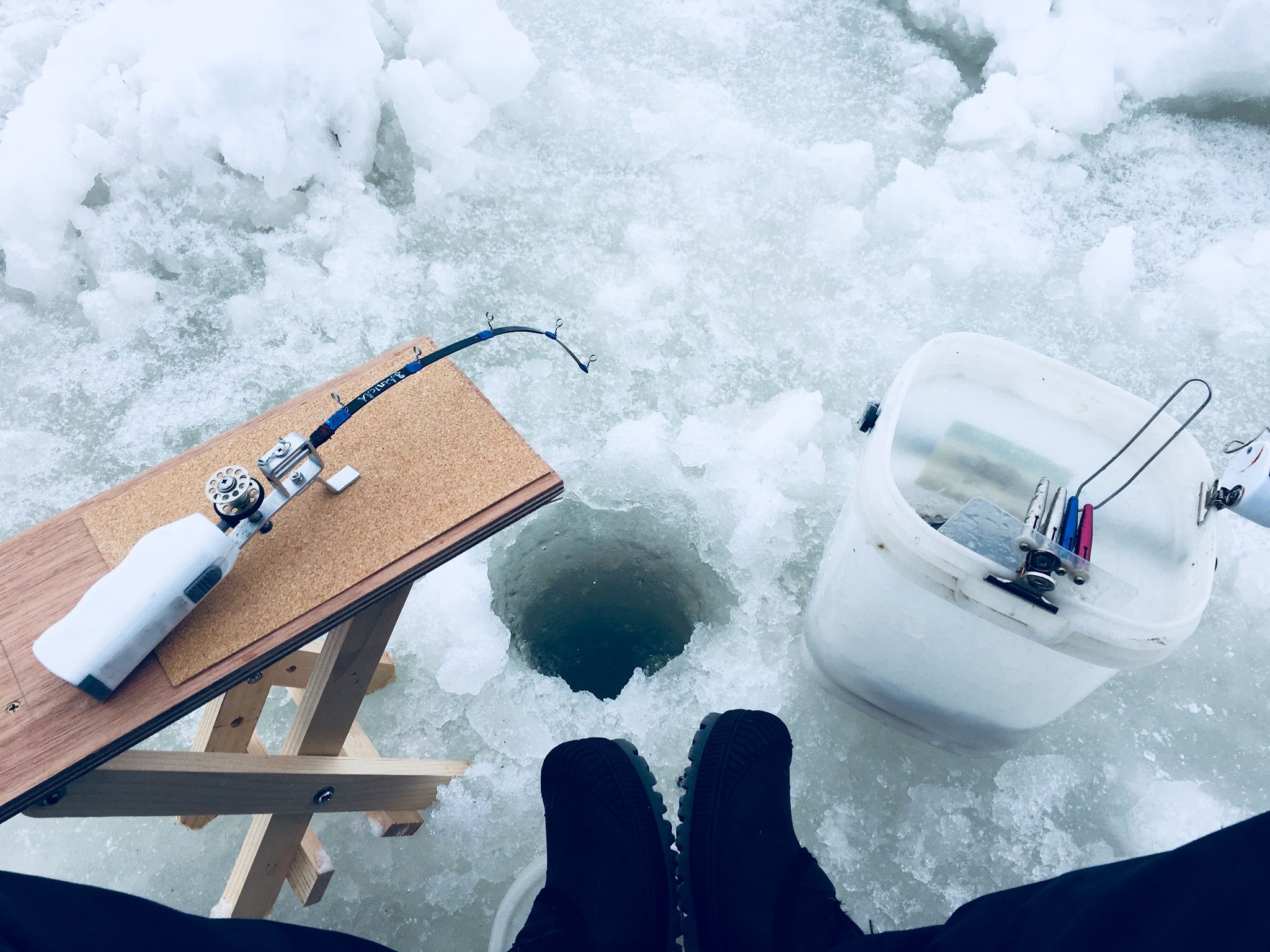 今年もローペースながらBlog投稿頑張ります さて本題ですが 年明け早々ワカサギ行ってきました 場所は砂川遊水池 到着すると事故が起きないようにと看板がありました ここからは自己責任です ![]() 湖面に降りると早速岸壁側が解けてました またいで乗り越え湖面に到達。 思った程不安定な感じはなく氷面もシッカリしているように思います。 ![]() 早速穴あけして氷厚確認。 厚さ30〜40センチくらい 歩くとブアブア水面が揺れてます。 やはり十分注意しなければ。。 ![]() 今日はテントなしで出来そうなので早速開始 あれッ つれね〜(笑) 毎年の釣果を裏切るような劇渋。。 ※ここら辺から撮影もめんどくなってます。ご了承を(笑) テントなしで身体が冷えてきた頃に良型ワカサギが釣れ始め 最終的にガクブル状態で90匹に到達( ;´Д`) それなら100匹目指そうと頑張るもののその10匹が長く 小便もしたくなりトイレに行くにもめんど臭く違う意味でブルブル´д` ; 最終的にガクブル拷問状態で100達成 ![]() やっぱテントって大事なんだ(笑) と痛感した初釣りでした ![]() にほんブログ村 お気に入りの記事を「いいね!」で応援しよう