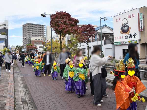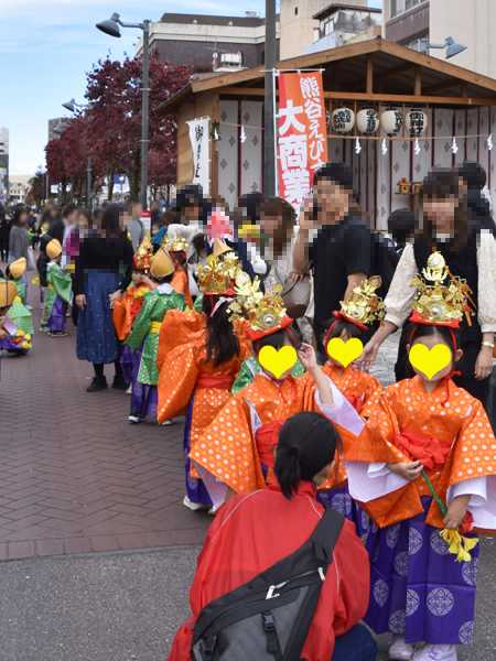 ![]() 掲載しそびれの年が続きましたが、今年は載っけときます 11月1日におこなわれた、熊谷えびす大商業祭の「ご神体稚児行列」を見たよ。 ※引き続きコメント欄を閉鎖中です、申し訳ありません。 何だかんだで、今年も残り2週間足らずとなりましたね… せめて年内に掲載しておきたい件をいくつか、早めにブログ化したいです まずはイベント関係、えびす祭と酉の市を一緒に。 ![]() この日は、行きたいイベントが3つ重なりましてね。 しかも今年は、えびす祭の「ご神体稚児行列」が午前中に変更されたので 深谷市で開催の「コーヒーと日常」との兼ね合いで、参ったな(^^; とりあえず、稚児行列を優先させますか! 10時20分ごろ、星川通りの上流方面に行ってみると 祇園会の皆さん、お稚児さん&父兄さん、宮司さん、巫女さん等々 行列に参加される方々がスタンバイ。 ![]() ![]() はいっ10時30分! 祇園会さんは、万灯みこし・米俵を元気よく担ぎ出し ![]() ![]() ![]() 高下駄を履いた猿田彦さんも練り歩き~ ![]() ![]() ![]() そして楽しみなのは、たくさんの華やかなお稚児さん 少子化云々いっても、結構集まるものですな。 ![]() ![]() 布で隠されながら進む、ご神体。 ![]() ![]() ![]() ![]() ![]() 万灯みこしは、鳥金さん前でぐるっとして ひと盛り上がり(^^) ![]() ![]() ![]() 星川の南側から北側の道へと移動しつつ、お祭り広場までの道のりを盛り上げ~。 ![]() ![]() ![]() ![]() ここまで来ると、ご神体はお姿を現して 米俵とともに、お仮屋に上げられる。 ![]() ![]() 今回はほんとに行列を見るだけになっちゃうけど、深谷にも行きたいので お店が並ぶ星川通りを眺めながら帰りますか… ユル可愛いラバーダックレース、久々に見たかったけどね。 ![]() ![]() そうそう、今回は路上で綱引き&パン食い競争もあったんだよね。 本番は時間の都合で見てないけど、 スタッフさんが予行演習していたよ ![]() 話は変わりまして…12月8日は、高城神社酉の市! 暗くなってきた頃に出向いたよ。 ![]() ![]() ![]() せっかくなので、いちばん外側の鳥居から入って参道を歩き まずは神社にお参り。 ![]() お、さっそく景気のよい掛け声が聞こえてきた。 そこのお店で、熊手が売れましたな ![]() ![]() ![]() 寒い日だけど、あったかい雰囲気の恒例行事。 これをもって私の年内行事撮影も、シメですかね… 1週間後くらいには星川夜市もあったけど、その日は 丸1日がかりの窓&サッシ掃除の日で、 めいっぱい日没ギリギリまでかかり… 後始末(掃除)もあるので、星川はやめておいた(^^; ではグルメ・行事・日帰り旅・イルミネーション等々 色々たまってますが、年内あといくつかブログ更新します! ●当サイトのお祭り・イベント写真は、お顔にモザイクを施しています。→説明コチラ ●当サイトの内容はブログ・facebook等 「ご自身で責任を持つサイト」以外には 一切の例外なく転載 (抜粋・要約含め) 及びリンクを厳禁いたします。 お気に入りの記事を「いいね!」で応援しよう