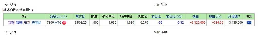 127位 7806 MTG (東G、9月優待) ○