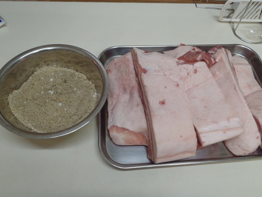 みなさ~ん!沢山のコメントありがとうございましたみなさんの応援で、頑張る事が出来ました2ヶ月間が、あっという間に過ぎました暑い夏、充実した毎日でしたそして、最後の仕上げに合宿して完成にこぎつけました「今年の夏は、がんばったなあ~!」と自己満足に浸ってます合宿中にベーコンの仕込みもしました(ピザにはベーコンは必須ですもんね)豚バラ肉を4キロ用意しました塩と砂糖を半々(これも人によって色々です)ハーブやスパイスをたっぷり入れますバラ肉に、ブレンド塩をすり込んで冷蔵庫でしばらく寝かせます只今、睡眠中!味が染みたら、塩抜きしてスモークしますそれまでは、熟睡ですもう一つ、合宿中にブラックベリーのジャム作りブラックベリーは種が多いので取ります結構手間が掛りますでも、美味しいジャムの為には手間は惜しみません頑張ったんですが、8本しか出来ませんでしたジャム作りは、暑い中毎日収穫を続け沢山溜まったら、ジャムに煮ますでも、出来るのはこれだけ・・・ちょっと、淋しいな!みなさんのコメントで、勇気を貰いますいつも、ありがとうございますにほんブログ村