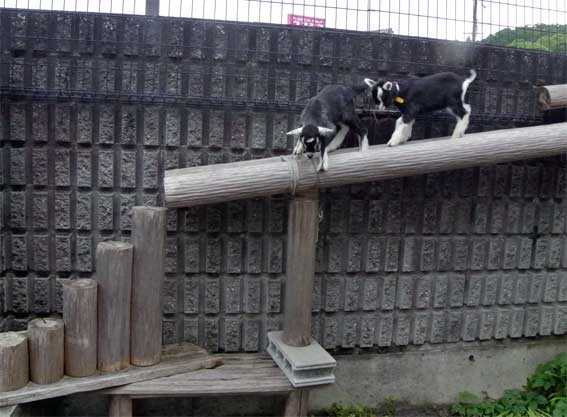 ![]() 2021.5.13生まれ メス 2021.5.15生まれ メス mimiミミ 撮影2021.6.18 生後1か月と3日5日の子ヤギ達です。 自分達の意思でこのスカイブリッジに登り 遊んでいます。 トカラヤギの血は凄いです。 ![]() ![]() ![]() ![]() 行動展示 という言葉が有りますが 私は山羊の行動飼育を目指しています。 ヤギの持つヤギ本来のパフォーマンスを引き出す飼育法。 一番ストレスの少ない安住の棲み処と成ると思います。 【行動展示】 動物本来の特徴的な行動を引き出してそれを観察できるような工夫をした展示。 高い所が得意なヤギには高い所を造ってあげる。 細い橋を造ってあげる。 寝床を高床にしてあげる。