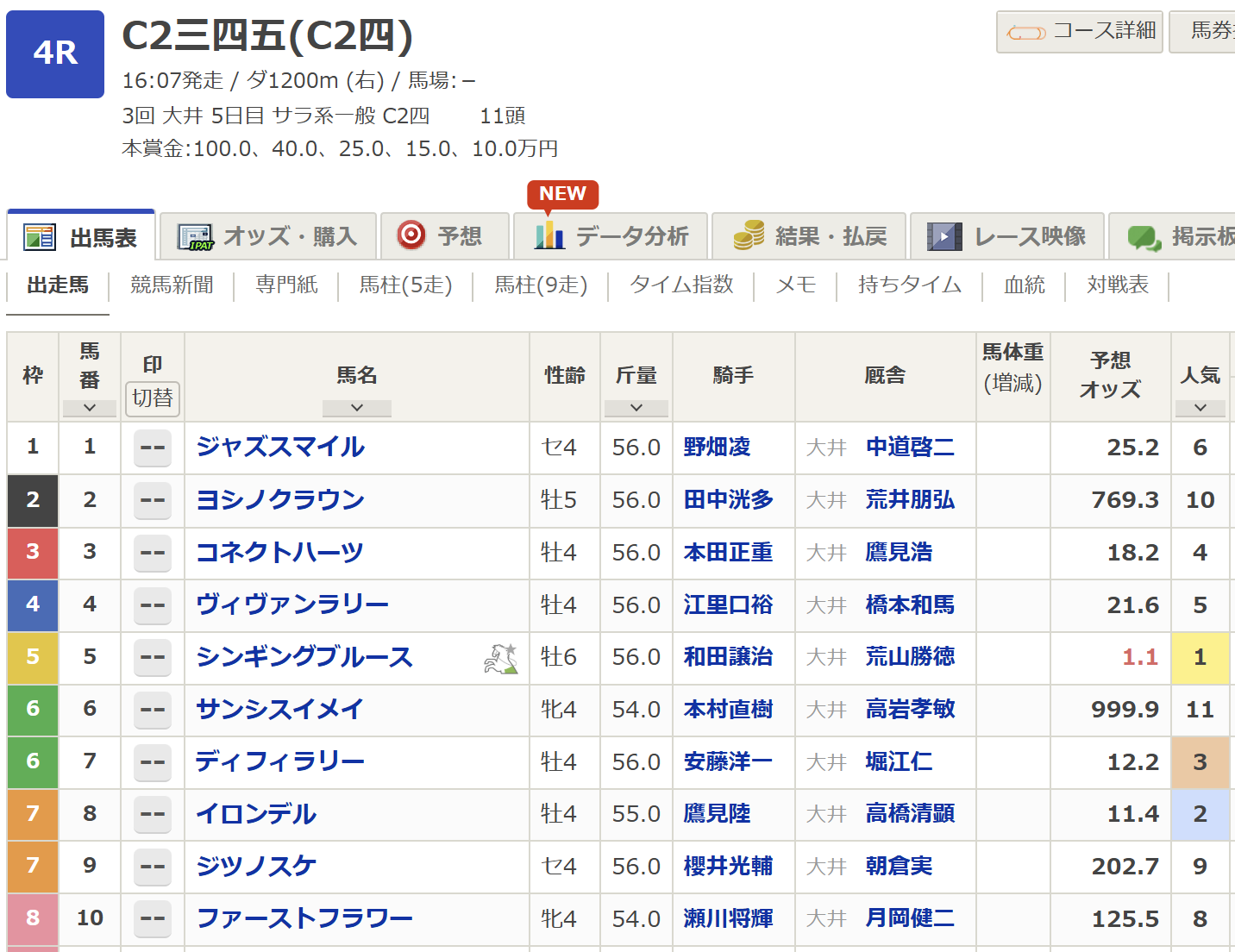 ![]() シンギングブルース号、やはり次のレースも君が主役だ!! 昨秋にノルマンディーOwnersProとして再デビューを果たして以来、全く危なげないレースっぷりで5連勝を飾ったシンギングブルース号(牡6歳)。次走は今週、23日(金)大井競馬4RのC2戦である。発走予定時刻が16:07だから、午後2時半ごろに会社を抜け出して自宅に帰る途中に大井競馬場に立寄るといった感じになるでしょう。果たして今回も勝利して、夢の6連勝を飾ることが出来るのか!? その可能性は高いでしょう☆彡。先週末の公式ページで荒山師が、これまでよりメンバーレベルは高くなりますと仰っていたので、先ほどnetkeibaの出馬表を眺めてみた: ![]() なんと、既に予想段階から単勝1.1倍だ 荒山師がおっしゃられている今までよりメンバーが強化されるというのは、想定2番人気の馬なんでしょう。ここ5戦しで3勝、3着1回、4着1回と安定した成績であるし、前々走はC2特別を勝利している。ただその時の勝ち時計が、1分14秒4「であれば、あまり心配する必要もなさそうだ。 枠も理想的な5番枠を引いたので、前々でレースを進めて3コーナーからさらに加速して、先行集団を置き去りにして、直線に入ったら、さらに2段ロケット🚀を噴射して引き離すといったいつものシンギングブルース号のレースが見られそうだ。 荒山師もコメントされているように「そもそもC2クラスではポテンシャルが違いますからね。連勝記録を伸ばせたらと思っています。」といった期待に違わぬレースを見せてくれるに違いない。まだまだ目標は先にあるので、アクシデントにだけは気を付けて回ってきてほしい。 ![]() シンギングブルース号、ゴール板前で待ち受けておりますのでよろしく❣❣ お気に入りの記事を「いいね!」で応援しよう
