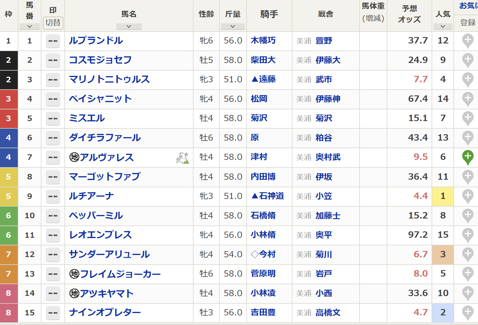 ![]() アルヴァレス号、明日のレースは5/24の東京・1勝クラスのレースの再戦に!! 明日アルヴァレス号が出走する新潟5R・1勝クラスに同クラブ馬フレイムジョーカー号も出走する:: 〇 5/24(土)の東京・1勝クラスの再戦となった。この時は前に行ったアルヴァレス号が直線脚をなくしたところに出遅れたフレイムジョーカーが突っ込んできて、7,8着という結果だった。出遅れた菅原明騎手には、出資されている馬友さんから容赦ない言葉が飛んだことが記憶に新しい(笑)。その後。アルヴァレスは福島で惜しい4着があったがフレイムジョーカーはその時以来のレースとなる。激戦のダート短距離1勝クラス。レース展開などによって結果は変わるだろう。両馬にも充分チャンスがある。 ![]() 軸馬不在、大混戦の様相だ©netkeiba 〇 アルヴァレス号は、調教で終いが甘くなる癖を修正するため意識的に終い重視の内容で、最後1Fに11秒台前半の時計をマークして、「いい動きができていました。」と奥村師も満足なようだ。体調面の不安も無いようで、前走と変わりない好状態でレースに向かえる見込みであるのは何よりだ。今回も前半は急かさず、抱えて運んでいくそうだが、やはり前走で跨った津村騎手に期待したいですね☆彡 〇 フレイムジョーカー号は、現在6歳馬。38戦して4勝(地方含む)とキャリアを積んできた。元々は2019年産の40口募集馬でクラブの期待を背負っていた馬だ。ここに来て終いを生かすレースが見についてきたようで、今回は菅原明騎手もリベンジ 〇 2年先輩を立てないといけないのかもしれないが、勝負の世界はフェアでなければならない(笑)。ま、3歳未勝利戦ではないので、そこまでシャカリキにならず、2頭仲良く掲示板に入ってもらえればいいのかなと思います ![]() 酷暑のため、明日もTV📺の前で応援させていただきます☆彡 お気に入りの記事を「いいね!」で応援しよう