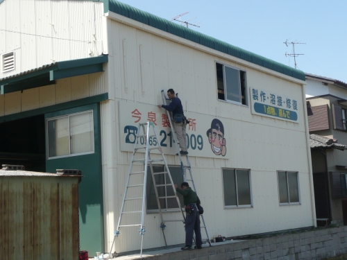 やっと今日完成~ おなじみの名刺のデザインから看板のデザインを考えてもらいました。 「あっこの顔は!」って思ってもらえたら嬉しいです 2週間前強風のため、この左側の看板のみ設置で終了~ 大荒れの天気や他の仕事が重なり本日まで延期に そして本日、ぽかぽか陽気の看板日和 めでたくすべての看板設置完了しました~ 「今泉製作所」→ 「鉄工屋 今泉製作所」へ。 これで何屋か良く分かるね 南側の正面入り口にも大きな看板つけました。 これでどんな鉄工屋さんが どんな仕事してくれるか良く分かるね 最寄りのコンビニより撮影。 コンビニで休憩しながら見てみてください♪ 天神橋方面から南をみていただくと見えますよ もしかすると似顔絵の旦那本人も見えるかも(笑) ※実際はもうちょっと大きく見えます。 これからも 2代目鉄工屋 今泉製作所を よろしくお願いいたします。 ペコッ 鉄なら何でもご相談ください。 あなたのオリジナル品作りますよ~♪ 1点物喜んで(^-^)図面がなくても大丈夫っ。 鉄も消耗品です。 ひどいサビや痛みは早めに修理! 部分的な修理もできますよ~♪ 今泉製作所 代表今泉稔 愛知県豊田市畝部東町則光45-1 TEL/FAX 0565-21-1009 MALL ojawooman@yahoo.co.jp