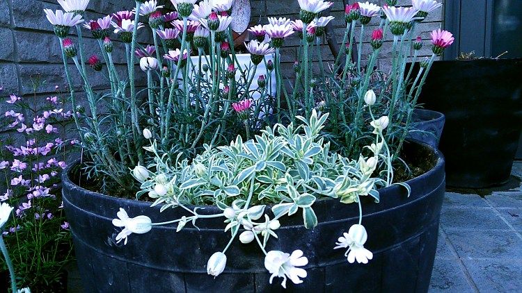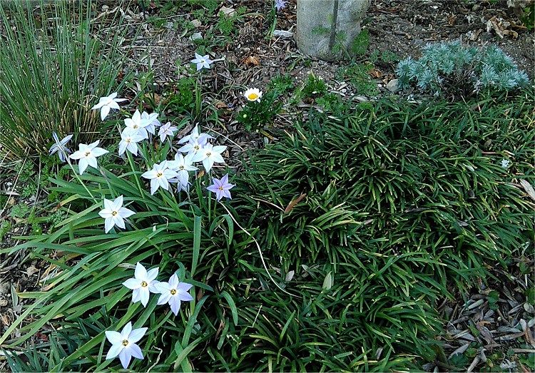![]() 先日購入したローダンセマムは、まとめて鉢植えにしました。 いろいろ寄せ植えするのも好きですが、なかなかちょうどいい苗が揃わないので、 ならばいっそのことと、同じ花を大鉢にワッサ~と植えるのも好きです。 もう少し花が充実してきてワッサワサになるのが楽しみです。 ![]() ↓シレネはこんなに可愛い花が咲くんですね。 観葉植物のつもりで何気なく買ってきたのに、思いがけない花にびっくり。 ![]() ↓ボロニア・ピナータ 相変わらず可愛いです。 ![]() さて、次は庭の花。 ハナニラは2種類あって、東の花壇は濃いブルーです。↓ ![]() ↓南の庭のハナニラは、淡いブルーです。右のほうに少しフワフワし始めたアサギリソウが見えます。 ![]() ↓やっと水仙が咲き始めました。 ご近所のはとっくに咲いているのですが、うちの庭は毎年遅いです。 原因はなんでしょう…? ![]() ↓去年、ミックスフラワーから育ったスイトピーが元気にたくさん咲いたので、 昨秋は種を購入して、あちこちに蒔きました。花が咲いたらまたご紹介しますね。 ![]() ↓昨年、根伏せが成功したクレマチスです。ただ、どれがどれか分からなくなってしまったので 花が咲くまで鉢で様子を見ています。 ![]() ↓こちらは家の中で越冬したゼラニウムです。 ゼラニウムは冬の屋内が最も好きなようで、1株に20個くらい花をつけ、咲きまくりました 外に出したら、またたくまにほとんどの花が茶色くなり、今は数個しかありません。 丈夫な花ですが、環境の変化は苦手のようですね。 ![]() ↓先日購入した宿根草はシマトネリコの下に植えました。 まだまだ寂しいガーデンです。 ![]() クリックをお願いします。楽しみにしています。