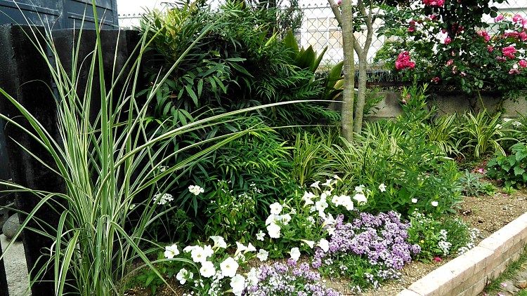 ![]() 今日の画像はとっても地味です。 初春に丸刈りのように短く切り戻したグラスが綺麗に育ってきました。 カレックス・エベレストです。上に登っているのはヘンリーヅタ。↓ ![]() ↓こちらは、斑入りツルニチニチソウ(左)とベアグラス(右)です。 ![]() ↓手前はカレックス、後ろは先日植えたばかりのペニセタムとエリムスという穂の綺麗な(はず)の グラスです。秋が楽しみですが、今はまるっきり雑草ですよね。 また穂がついたら詳しく載せます。 ![]() ↓去年植えたホスタ2種です。 今までホスタは東の庭にいくつか植えたのですが、乾燥がひどく根付きませんでした。 やっと安住の地が見つかりました。それにしてもなかなか大きくなりませんね。 ![]() ↓庭の葉ではないのですが、先日、外出した帰りに園芸店で購入した植物です。 コクリュウ、ヒューケラ、チョコレートコスモスなど、今回はなぜか暗い色のものばかりを選んでしまいました。 ピンクのガウラだけは明るい色ですけどね。 ![]() ↓左のグラスはシマススキです。 このくらいで成長が止まってくれれば嬉しいのですが、大きくなるようです…。 ![]() ↓中央奥の剣葉は、アマクリナムです。芽が出て来たところへ大霜がおり、葉先が枯れてしまいました。 ![]() ↓ヤブランも綺麗に伸びてきました。 左のヤブランは初春に切り戻さなかったもの、右のは切り戻したもの。 やっぱり春には切り戻したほうが良さそうですね。 古い葉が残っていると新芽の成長が遅いのでしょうか。 ![]() ↓フワフワと可愛い朝霧草です。 ![]() 中央のグラスはミューレンベルギア・カピラリスです。 秋に赤い穂が立ちますが、葉が広がりすぎるのが難。 2株あるので1株は掘り起こそうかな~。 奥はサルビア・カラドンナ。まだ植えたばかりです。 ![]() ↓4/25日に植えたダイカンドラ(ディコンドラ)シルバーと挿し芽ペチュニアは、ここまで育ちました。 ![]() 4/25日の画像です。 ![]() クリックをお願いします。楽しみにしています。