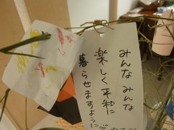 赤ちゃん抱っこ教室の日、玄関網戸完成。七夕飾りみんなで作りました