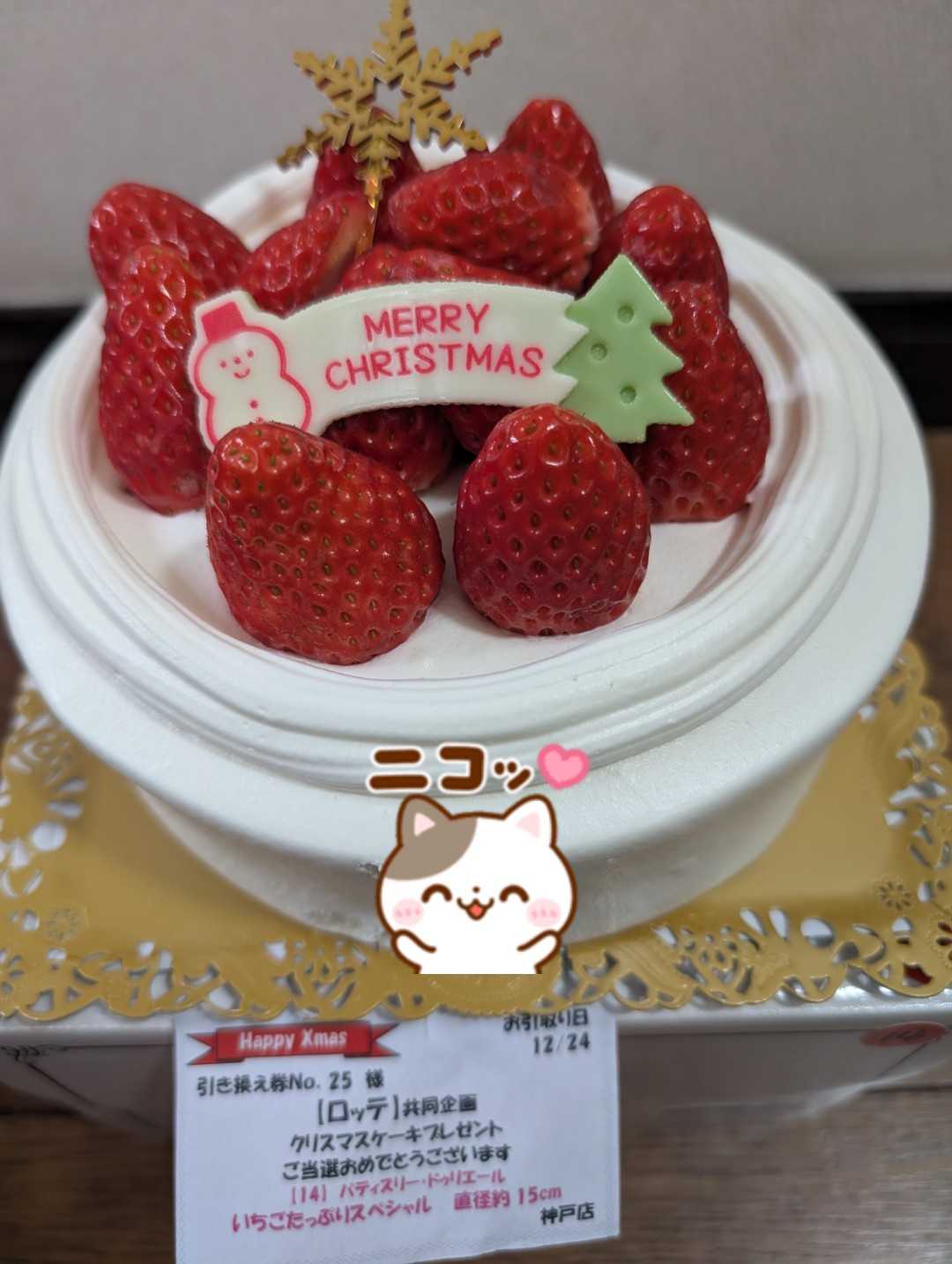 ロッテさんとのタイアップのクリスマスケーキ引換えて来ました🍰パティスリードゥリエールいちごたっぷりスペシャル🍓というケーキでとても美味しそうです🥰