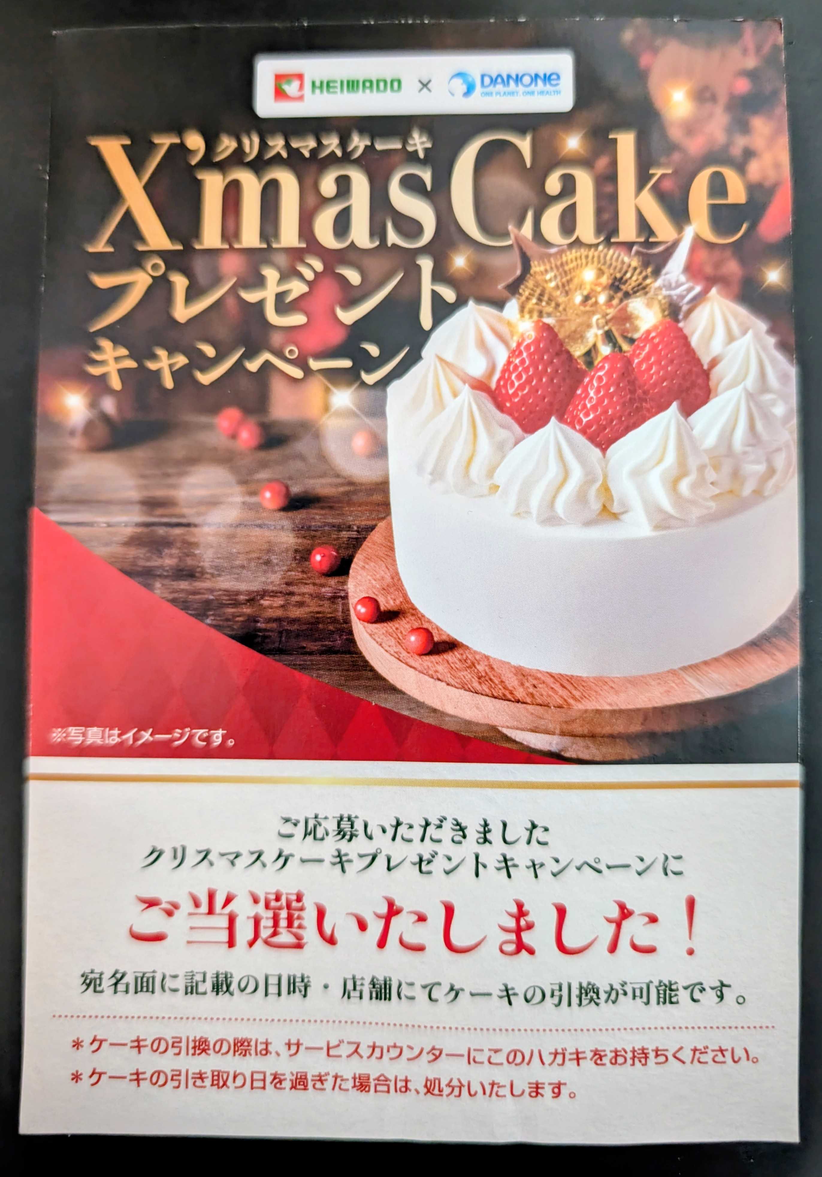 平和堂さんのクリスマスケーキ当選ハガキが来ました🎉何年かぶりの当選です🤗