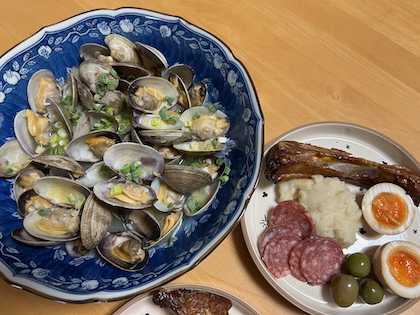 その時期は地元スーパーに北海道産のあさりが入荷していた。 定期的にセールになるので、そのタイミングで買っていて。 なので5〜6月は毎週決まった日にあさりをいただいていました😊 600gくらい購入して毎回酒蒸し。 最後にネギかパセリのどちらか(あるほう)を散らして完成、という 簡単な調理。 旬が過ぎれば、またいただくのは1年後だなと思っていた。 ほら、日本は四季があり季節ごとの食べ物がいろいろあるので その時期にしか食べられない、というのは普通だったから。 で、、、、、 1年待つのかと思いきや、、、 秋も旬だと知った。 スーパーに3ヶ月ぶりで北海道産が並ぶ。 買ってきましたよ😂 ![]() いつものようにバスルームで砂抜き&塩抜き。 そして完成!!! ![]() 一粒がかなりデカい💖 期待値高まる〜〜〜💖 そして〜〜期待を裏切らない美味しさ💖 付け合わせは右横のやつ。 スペアリブとマッシュポテト、味たまご、サラミにオリーブ。 あとはパン!! 美味しくいただきました。ごちそうさま🙏 お気に入りの記事を「いいね!」で応援しよう
