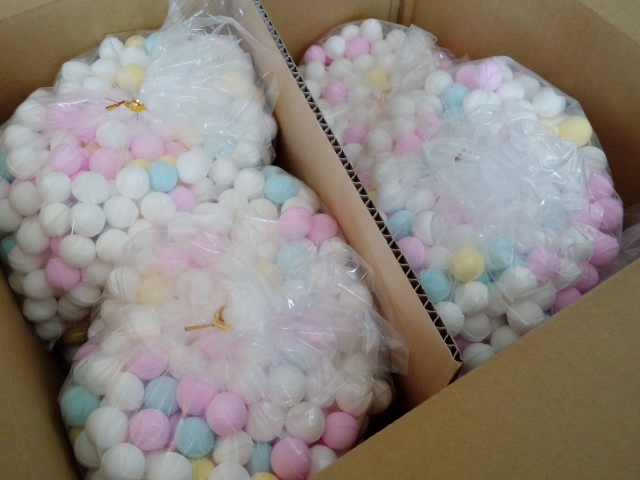 イコマ製菓本舗さんのレインボーラムネ 届きました。ずしっ!と段ボールで。申し込める最大数の12袋頼んだので、750g入りの袋が12袋。9kgも!これだけあっても、あっと言う間になくなるんだろうな…。 白 ピンク 水色 黄色の4色。「レインボー」という名前ですが、7色あるわけではありません。 直径2センチほどで、普通のラムネより大きめですが、甘さが控えめですっきりした味なので食べ始めると止まらなくなってしまいます。口に入れるととスーッと溶けてなくなります。以前、スーパーでレインボーラムネそっくりなラムネを買ったことがありますが、後に小さいつぶつぶが残ってイマイチでした。レインボーラムネは、ギュッと丸く固められていますが、中には固め方がゆるくて周りが削れているものがあります。 上の画像で、左側が正しい?もの。右側前方が削れたもの。この削れたのが我が家では人気で、息子はわざわざそれを探してたべてます。削れているので、口に入れた瞬間からスーッと溶けるので、舌ざわりがたまらないんです。ついつい手が伸びてしまうレインボーラムネ。食べすぎ注意です。