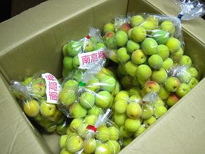昨日は恒例の「めっけもん広場」へ、梅&桃の買出しに行ってきました。6月の初旬頃に、スーパーに青梅が並びだすと何とな~く落ち着かなくなり…(^^;)買いたい気持ちを抑えて、下旬まで。梅が熟して色づいてきて、梅干用が出回り始めるのを待って、熟した梅と桃が一緒に買えるこの時期を狙って和歌山まで…。梅9Kg、桃(正規品2箱・加工用1箱)買って来ました。梅2Kgは梅干に、7Kgは梅ジュース。梅ジュースの作り方もいろいろありますが、私は冷凍してからつけるので冷凍庫は梅の貯蔵庫となっております。梅農家の方に教えてもらったレシピによると、「24時間以上冷凍」なので、今晩あたりからボチボチ瓶に移してジュース作りに入りたいと思います。桃は…痛みの酷いのは帰ってすぐに桃ジュースにして飲みました。加工用のものはシロップ漬けに。ゼリーにしたり、ヨーグルトと混ぜたり etc. いろいろ楽しめます。冷凍しておけば、牛乳を入れてミキサーにかければ、簡単に桃スムージーができます。桃の缶詰も冷凍しておけば桃スムージーができますが、生の桃だとやはり桃の風味が違いますね。美味しいです。家の中は、梅と桃のあま~い香りでいっぱい。さて、梅干の仕込をして来ようっと。