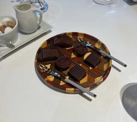 「シェ・ケンタロウ」のランチは2種類あって、どちらも魚料理と肉料理は付くタイプ。 そんなに食べれないので、少ない方、というか安い方に。 ドリンクのペアリングって基本頼まないけど、ケンタロウのは「ワイン」「ミックス(ワインとノンアル」「ノンアルコール」と3種類あり、ミックスだと料理ごとにワインかノンアルかを選べるようなので、今回は頼みました。 最初はシャンパンか玉露ほうじ茶、と言われ、迷った末玉露ほうじ茶「香焙」で。 ![]() オードブルはパテアンクルート。高い方はこの前にアミューズがあります。 ![]() これ、名物らしい。確かに美味しい。常連さんは倍にして貰うらしい。 次は魚料理なので、わたしはシャルドネ。友人はここでもまだお茶にしていました。 ![]() ミックスなのに「結果、3種類ともお茶、という方もいらっしゃるんですよ」と。 メニューの通りに書くと「鱸 アンティーブ キャビア」アンディーブよね。 ![]() 次は友人もわたしも赤。ファミーユ・グラってありました。家族経営のワイナリーのラストーワイン。 ![]() 「岩手県山形村短角牛サーロイン」ちょっと重いワインと良く合います。 ![]() 岩手に山形があるのね、ってググったら、今は久慈市山形町だそうです。 デザートは「温かいピスタチオのビスキュイ」 ![]() まだ湯気が出てましたよ。 ![]() プチフールは隣接「CALVA」のチョコ。 ![]() 一番左がカルヴァ名物羊羹ショコラ。餡とショコラ、合います。 シェ ケンタロウ (フレンチ / 北鎌倉駅) お気に入りの記事を「いいね!」で応援しよう