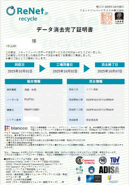 朝ごはん。 ![]() バケット、目玉焼き.. 他。 ドライマンゴー入りヨーグルト、アイス・カフェオレ。 いつもは形不揃いのこちらですが 先日の楽天スーパーSALEで1,080円だったので 今回はこちらを購入。 70g×5袋、ジッパー付き (形不揃いのほうはジッパー無し) ![]() ![]() ドライのままだとこちらの方が固いけど ヨーグルトに入れて一晩おくと同じくらい柔らかくなって プラス風味もあり、砂糖不使用でもマンゴーの甘さだけで 無糖ヨーグルトでも美味しく頂けます。 賞味期限も2026年7月までだし 次回から安い時にまとめ買いしときます('◇')ゞ お昼ごはん。 ![]() 土鍋で醤油ごはんを炊いて~ ![]() おにぎり型でサクッとおにぎりにして トースター240℃で15分ほど。 見た目の焼き色はあまり変化なさそうに見えるけど 食感は外はカリッと、中はしっとりの焼きおにぎりです。 ![]() 焼きおにぎり定食、中華スープ(プラス乾燥野菜) 残ったら冷凍しとけばいつでも食べられる! ・・と、思うけど毎回その日のうちに完食してしまう我が家。。 *** 先日、OSがWindows 10のパソコンを処分した件。 PC本体の処分とデータの完全消去を 「リネットジャパンリサイクル株式会社」 に依頼して発送しましたが 今日、データの消去が終了(有料)したとの連絡メールとともに 「データ消去完了証明書」も頂きました。 マイページでPDFでダウンロードする(無料) 本書が欲しい場合は郵送を依頼する(有料) 業務用のPCだったら本書はいるけど 個人用だったらこれで充分だと思います。 ↓ ![]() 先方に発送したのが9/30 処理が終了してメールでご連絡いただいたのが10/10 もっと時間がかかると思っていたけど 早く済んで良かったです(*^-^*) オオベンケイソウ (大弁慶草) ![]() 葉っぱはサボテンっぽいです。 ![]() 猫ブログも書いてます お気に入りの記事を「いいね!」で応援しよう