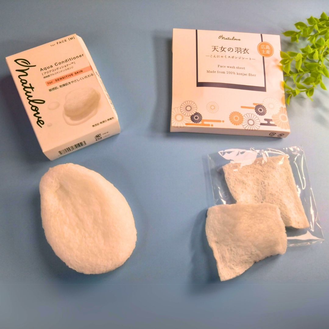 【こんにゃくスポンジ &シート 天女の羽衣】は、こんにゃく芋が100%で出来ているので、プルンプルンの柔らかさで変幻自在のフィット感。