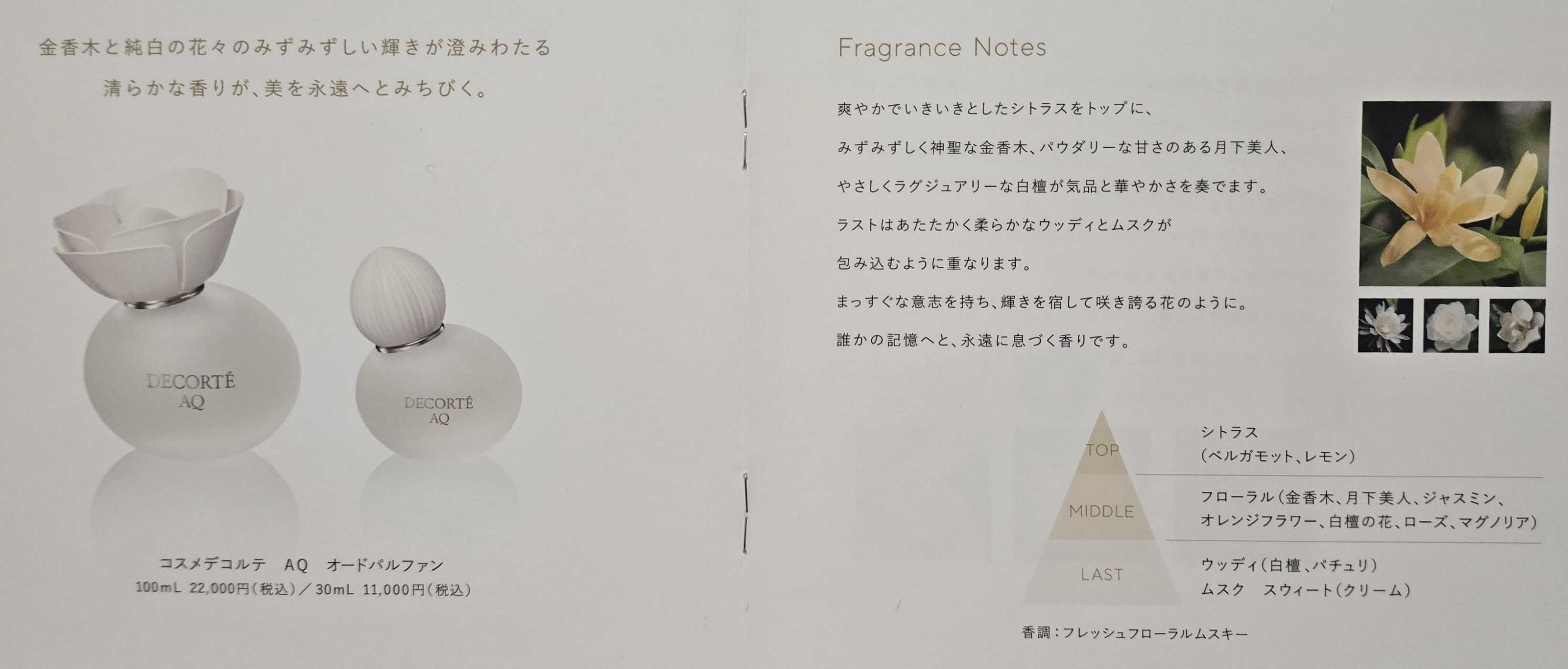 思わず「すっごくいい匂い♡どこの香水されてるんですか?」って聞いちゃって(恥) 教えてもらった時。えっコスメデコルテ?!コーセーの化粧品の?! こんないい香りが海外ブランドではなくて日本の化粧品会社が出してるなんて意外でした。 帰宅して@コスメの口コミいっぱい読んで良さそうだったので買っちゃったw 私、基本的に紅茶系香水が好きなので、こういうフローラル系はあまり手を出さないんですけどね。 これは、ちょっと惹かれました Σ(ノ∀'*)ペチッ ![]() DECORTÉ AQ オードパルファン 100ml 22,000円 お手頃価格ですが、しっかり持続力&拡散性もあります。 香りの特徴をざっくり言うと石鹸とかパウダリーな香りが最初にきて 最後は柔らかいウッドやムスクな香りでトップからラストまで凄く好きな香りでした。 何に例えればいいかな~ほんと石鹸とか柔軟剤とかの香りを主体の奥に深みのある清涼感。 そして化粧品会社コーセーらしさもあって、スキンケア効果もあるのです。 金香木の香りが幸せホルモン『オキシトシン』を分泌して肌を綺麗にしてくれるそうです。 AQスキンケアシリーズの香りと一緒と謳っていますが、ちょっと違うかなーって思います。 まぁ香水ですからね・・しかもオードパルファン。全く一緒ににはならんわなw しっかり香るので付けすぎると香害になるので手首or足首ワンプッシュとかで十分だなって思った。 ![]() トップ~ミドルにかけてはクロエやキャロライナヘレラ 212のような 石鹸系香水を思い浮かべるのですが、それよりももっと柔らかいふんゎりした優しい香りです。 たぶん月下美人やジャスミンの甘く上品な香りが魅力的なんだと思います。 そしてミドル~ラストにかけて、この香水の真骨頂かなと思うのですが、 なんとも深呼吸したくなる清涼感があるんですよ。もうね・・沼りますw ![]() 調香師はカリス・ベッカーさんと、カリーヌ・セルタン・ボワンさん。 ■Calice Becker 有名な作品としては名香Diorのジャドールでしょうか。 ですがカリス・ベッカーといえばキリアンの香水を多く手掛けております。 私のおすすめはキリアンの『インペリアルティー』という紅茶系香水! こちらも彼女が手がけております。紅茶系香水好きな方は是非! ■Carine Certain Boin ヨガとダンスを愛する調香師。 MyBloomやGoldfield & Banks Australiaといった有名企業とコラボレーションし、 Pacific Rock MossやBohemian Limeといった傑出した香水を生み出しています。 個人的にお昼のお出かけとか、お仕事ならデコルテAQでいいかなって感じ。 夜のデートとか、エロモードで勝負♥・・って時は、THOOのTHE TIME一択かなwww 気になる香水あと2つあるんだけど、それはまたいつか購入した時に書きまぁす(*´艸`*) お気に入りの記事を「いいね!」で応援しよう