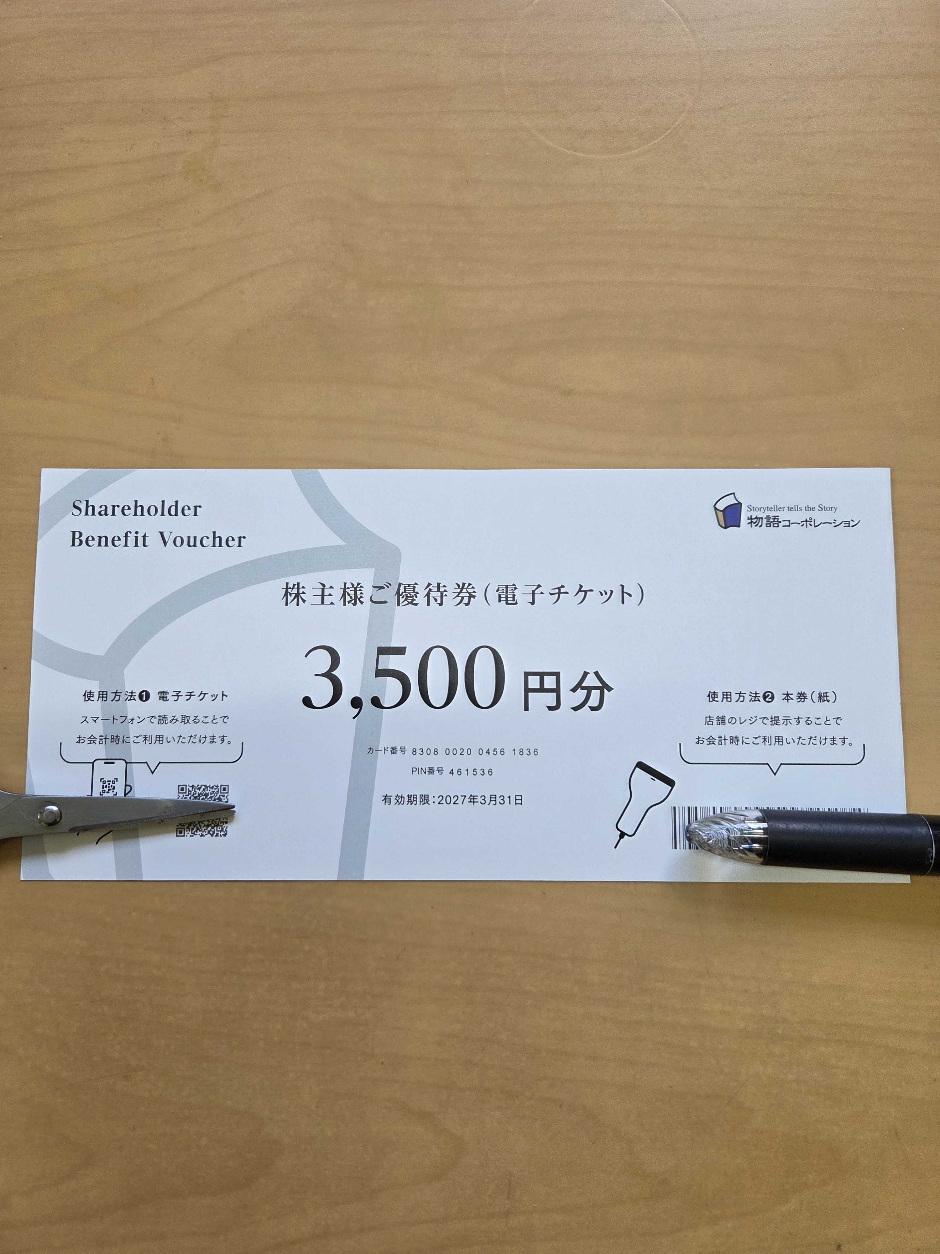 物語コーポレーションの優待が届きました。