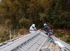 大きな入母屋住宅でして、3~4人がかりで半月間、ようやく大屋根のみ完成となりそうです。