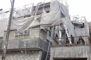 材料の搬出入が なかなか困難な現場ですが、昔からの人海戦術で乗り切っています。