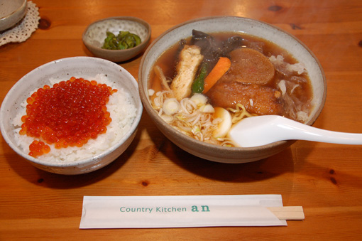 ![]() ![]() さっそく私はラーメンセットを注文。 鮭醤油らーめんにミニイクラ丼と漬け物が付いて、900円。 うーん、2ヶ月ぶりに頂いたアンの鮭醤油らーめんはやっぱり旨い! おお、イクラ丼も!! 私が行っていない「石狩麺恋会」加盟店が、まだ10店舗もあります。 早く回りたいですな。 ■お店のデータ 【店 名】カントリーキッチン アン 【所 在】石狩市厚田区厚田24番地1 【電 話】0133-78-2377 【営業時間】11:00~17:00 【定休日】月曜日 【駐車場】有 「石狩鮭醤油らーめん」については、下記を参照ください。 http://www.city.ishikari.hokkaido.jp/sightseeing/kankou05047.html#CONTENT1 お気に入りの記事を「いいね!」で応援しよう