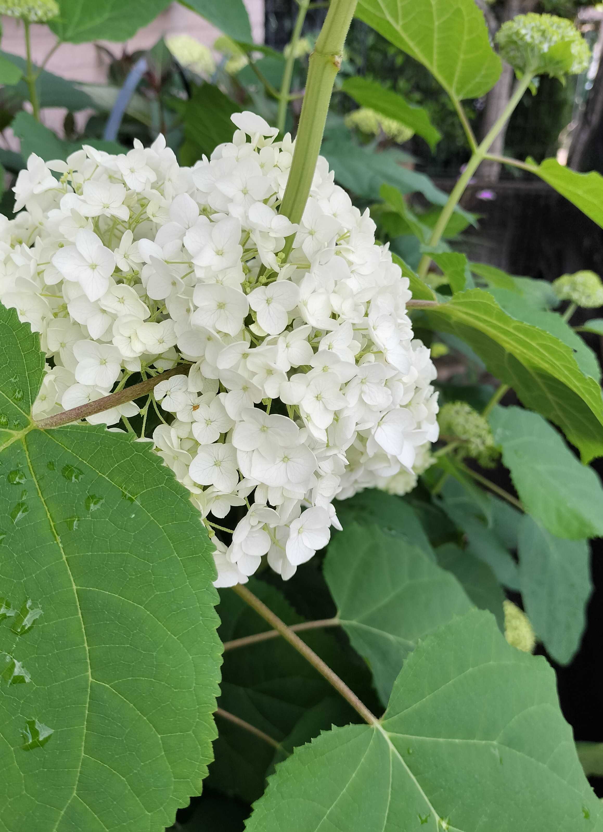 日曜日はやっと雨が止み 3日分の洗濯をしました 暑いのは嫌だけれど 洗濯物はカラッと乾いてほしいです 庭も雨でしなだれたり花が傷んだり 残念な状態の花が多いです そんな中やはり梅雨時の花アジサイなどは 生き生きと元気です 真っ白になってきたアナベル この黄緑色のアナベルも好きです アジアンビューティーの花色も しっかり出てきました そして雨になかなか強いのが サルビアネモローサカラドンナ 花が終わりかけてもすくっと棒状に伸びて カッコいいです モチロン花が咲いている姿もよいです このような穂状の花をスパイクプランツと 呼ぶこともあるようです レセダもスパイクプランツと呼んで いいかもしれません 丸い造形の花の中で レセダのようなスパイクプランツが加わると 縦線が強調されて 散らかった印象を軽減してくれる気がします ポピーなどは曲がりくねって咲くことが 多いです 近くにはレセダのような 真っ直ぐの穂状の花を置きたいです バーバスカムなどもともすれば 似たような花ばかりを集めると 散らかった印象を与えやすい花 レセダの隣に植えてよかったです もうすぐ咲き出してきそうなのが クガイソウ こちらもスパイクプランツと言えそうです西洋クガイソウ ‘ファシネーション’ この場所にはラークスパーなどを植えています 原種エキナセアなども植えています エキナセアパリダですエキナセア パリダ アリウム丹頂などもつぼみを 持ち始めています かなりいろいろな形状の花が 多く植わっている場所です スパイクプランツと言える サルビアネモローサカラドンナや クガイソウなどに縦のラインを作ってもらい 自然な中にも 違う形状の花が互いに映えるような 風景を作って欲しいといろいろ植えてますが なかなか難しいです
