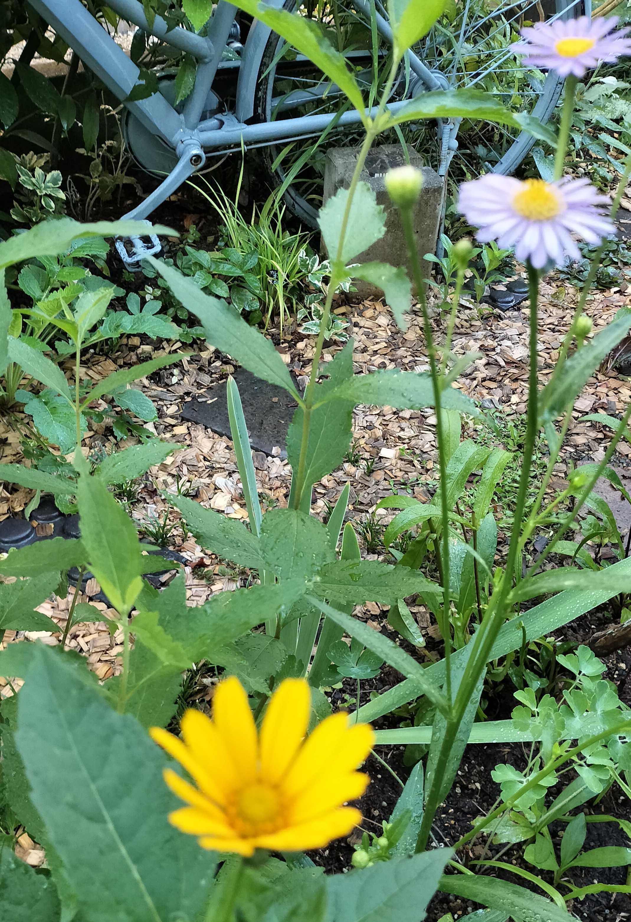 うちの庭のヘリオプシス3種が みな開花してきました 原種系のヘリオプシス 近くで咲いているシオンとの組み合わせが 気に入りました シオンはどの場所から咲くのか 把握していないので 組み合わせを狙ったわけではありません 偶然の組み合わせが 思わずステキでビックリすることも多いです 原種系のヘリオプシスは ありふれた花 ありふれた花色です ただシオンの花色が横にあるだけで 原種系のヘリオプシスの見え方が 違うように感じます 隣り合う植物って大事だと感じます ヘリオプシスサマーナイトも 咲き出してきました 花弁の形が少し違うだけでも 印象は変わります サマーナイトの特徴は黒軸であること これだけでも黄色の花が ぐっとおしゃれに見えます宿根草 苗 ヘリオプシス サマーナイト 9cmロングポット 宿根姫ひまわり 宿根ヒメヒマワリ 暑さに強い 耐暑性 多年草 ヘリオプシスブリーディングハーツは 一番先に開花しましたが その後花数を増やしていません ヘリオプシスブリーディングハーツも 花茎が黒いです そして葉色もダーク 花色も変化し咲き進むので 人気があります ヘリオプシスは 姫ひまわりの名前で親しまれている 宿根性のヒマワリ 花期も長く夏の暑さにも強く育てやすいです 肥料をほとんどいりません 時期が来ると芽を出して 夏中咲いてくれます ローメンテナンスで だれでもお庭に取り入れやすい花ですプレミアム 宿根草 苗 ヘリオプシス ファンキースピナー 12cmポット 半八重咲き Funky Spinner 暑さに強い 耐暑性 耐寒性 ヘリオプシスも新しい品種が出ていて ファンキースピナーは 銅葉やダークな花茎 八重咲の花が ステキな品種 まだ実物には お目にかかったことがありません 銅葉 黒茎 八重咲きの花と オシャレな要素を取り込んだ品種を 作り出してくるのはスゴイです