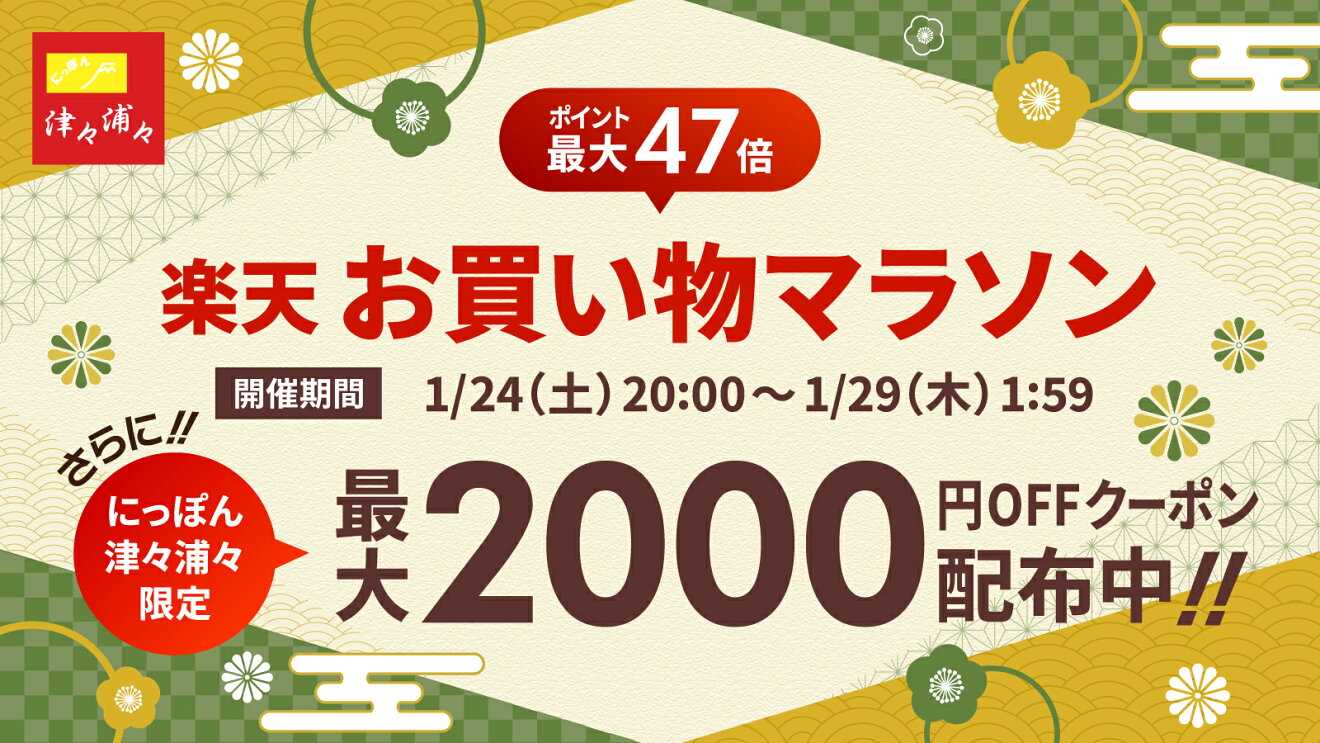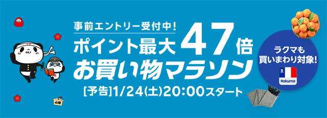 こんにちは。 今日も私のブログを見に来ていただき ありがとうございます。 職場の課に届いた年賀状。 14枚しかなかったのに なんと3枚も当選していました! ![]() すごい当選確率! 近年は枚数も激減していますが その分当たりやすくなったの? よく分かりませんが、 ありがたく使わせていただきます! ☆ ☆ さて 1月2回目のお買い物マラソンが始まります。 ![]() 今回は参戦しない予定ですが お得なものが出たら買おうと思います。 ※この記事は情報が入り次第追記していきます。 ↓毎回エントリーが必要です ![]() ↓抽選で最大100%バック(1/25) ![]() ↓抽選で最大100%バック ![]() ↓本・雑誌 条件達成でポイント最大10倍 ![]() ↓毎週もらおう!ドリーム抽選券 ![]() ↓来年2月23日までのロングランイベント ![]() ↓今回はありそう… ![]() ☆ ☆ ラクマで1,000円以上購入で 楽天でのお買い物がポイント11倍になります。 ![]() ゲーム・本を買ったり出品したりでポイントもらえるキャンペーンもあるので 忘れずにエントリーしましょう。 →ゲーム・本ポイント2倍キャンペーン 我が家も子供のものを買ったり、 リール付きのストラップなど 可愛い小物を買ってポイント11倍にしています。 ![]() ラクマに興味のある方は こちらの招待コードを入力して始めると 300ポイント貰えます! (私にもポイントが入ります) ↓招待コード↓ nyo2n ここからいけます →ラクマ ↓毎月エントリーのイベント ![]() ☆ ☆ ☆クーポン編☆ ↓爆速でなくなるクーポン(1/25) ![]() ↓何度でも使える最大2,000円offクーポン ![]() ↓ダイヤモンド・プラチナ会員クーポン ![]() ↓対象アイテム最大半額クーポン ![]() ↓店内全品割引クーポン ![]() ↓楽天ファッション最大2,000円offクーポン ![]() ↓楽天ファッション FLAGSHIP STOREクーポン ![]() ↓楽天カード会員限定クーポン ![]() ↓楽天モバイルユーザー限定クーポン ![]() ↓brand beauty300円offクーポン ![]() ↓津々浦々クーポン ![]() ↓Joshinで使える最大5,000円offクーポン ![]() ↓サンリオ×バレンタインクーポン ![]() ↓バレンタイン特集クーポン ![]() ↓バレンタイン特集クーポンもう一つ ![]() ↓バレンタイン特集クーポンもう一つ ![]() ↓カゴメまとめ買いクーポン ![]() ↓カゴメ野菜生活など10%off ![]() ↓サッポロのクーポン ![]() ↓対象のp&g商品30%off ![]() ↓ベビー用品などまとめ買いで10%offクーポン ![]() ↓アフューム15%offクーポン ![]() ↓ニベアクーポン ![]() ↓Kenvue最大20%offクーポン ![]() ↓楽天ヘルスケア館クーポン ![]() ↓女性の健康とキレイ特集10%offクーポン ![]() ↓おうちで機種変 ![]() ここからまち楽クーポンです。 ↓神奈川の美味しい農水産 ![]() ↓愛媛のサステナブル ![]() タイムセールで半額のこんにゃくベーグル ちょっと惹かれる! ↓岩手県web百貨店 ![]() ↓秋田県物産展 ![]() 高割引率なクーポン。 比内地鶏のスープ4つは 1,500円→1,200円。 比内地鶏の鍋は 安くなり過ぎてクーポン使えないけど 2,580円→1,290円 送料込みは激安! ☆ ☆ ☆エントリー編☆ ↓エントリーでポイント10倍 ![]() 中高生の通学リュックなど大物を買うなら ポイント10倍は大きいですね。 ↓25日0:00〜23:59ポイント10倍 ![]() ↓25日20時から4時間限定ポイント10倍 ![]() ↓エントリーでポイント10倍 ![]() ↓エントリーでポイント7倍 ![]() ↓エントリーでポイント5倍 ![]() ↓エントリーでポイント10倍 ![]() ↓エントリーでポイント7倍 ![]() ↓エントリーでポイント5倍 ![]() ↓日用品ポイント5倍 ![]() ↓楽天ビックエントリーでポイント2倍 ![]() ↓楽天ファッション×楽天ブックス ![]() ↓バレンタインイベント ![]() ↓バレンタインイベントもう一つ ![]() ↓ひつじのショーンホットサンドメーカー当たる ![]() ↓トレンドトップスポイントバック ![]() ↓エントリー&10,000円以上購入で300ポイント ![]() ↓ドリンクポイント最大12倍 ![]() ↓ビール・発泡酒・酎ハイなどポイント最大5倍 ![]() ↓サントリーのイベント13日で更新 ![]() ↓コカコーラ社製品スタンプラリー ![]() 年末年始にドリンク買い溜めたから なんと今スタンプ6個! ![]() ひええー、こんなの初めて(笑) まとめて買ってそこから使っていけば 災害対策のローリングストックにもなり安心です。 ↓ママ割メンバーポイント2倍 ![]() ↓ママ割メンバー楽天ビックポイント最大5倍 ![]() ↓ママ割メンバーポイント最大5倍 ![]() ↓ライオンA・B両群から購入で200ポイント ![]() ↓洗剤複数購入でクーポンプレゼント ![]() ↓コンタクトレンズキャンペーン ![]() ↓メディキュット・ミューズなどポイント最大15倍 ![]() ↓今のカードは2/2までです ![]() ↓13日で更新になってるので再度エントリー! ![]() ↓同一店舗内買い周りでポイント最大+9倍 ![]() ↓同一店舗内買い周りでポイント最大+9倍 ![]() ↓楽天ブックス×楽天24 ![]() ☆楽天ブックス☆ ↓5,000円以上購入でポイント2倍 ![]() ↓スキルアップ本ポイント10倍 ![]() ↓ゲーム・おもちゃポイント最大5倍 ![]() ↓楽天モバイルユーザー100万ポイント山分け ![]() ↓CD・DVD・ブルーレイ最大ポイント10倍 ![]() ↓CD