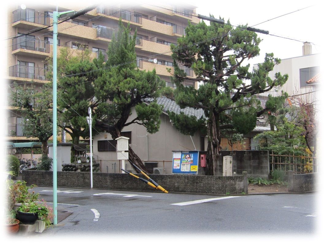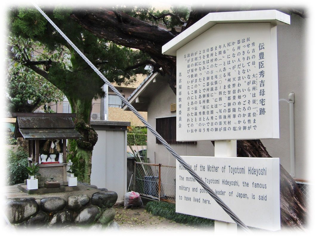 八大龍王社から徒歩で南に5分程歩きます ![]() グーグル先生曰くほぼ平坦と仰るが、龍神様の池があった場所です、平坦な訳がない。 緩やかに下り、そして緩やかに上り御器所八幡宮方向に続きます。 ![]() 緩やかな登り、その先は写真の様な三差路となります。 「止まれ」の標識の左に小さな社が視界に入るはずです。 「御所屋敷趾」到着です。 車で訪れると駐車場に困る場所かもしれません。 ![]() 境内と言っていいのか分かりませんが、歩道から板宮造りの社がとても良く見えます。 ![]() 三差路から御所屋敷趾の全景 玉垣はなく、代わりにブロックが積まれ敷地を取り囲んでいます。 ![]() 屋敷跡の道路脇に名古屋市教育委員会の解説板。 『秀吉の母、大政所は従一位まで叙せられていながら、その素性がはっきりしない。いつごろから御器所の人だと云われ始めた分からないが、天野信景の随筆「塩尻」には「尾州愛知郡御器所村の人也」とある。また、この後天保年間(1830~44)尾張藩がまとめた「尾張志」には「この御器所村の古老伝説に、太閤秀吉母堂はこの御器所屋敷に住んで秀吉を生み、そこで御所屋敷というようになった」とある。 秀吉の母が持萩中納言の娘との伝説と、中納言の屋敷があったとの伝説が結び付いたものと云われている』 尾張史の記述については、これと符合する裏付けが定かではないようです。 大政所(仲)1516年(永正13)~ - 1592年(天正20) ![]() 屋敷趾には基礎の跡とか、それを語るような遺構はありません。 それと知らなければ、ここはどなたが祀られた神社でしょうね、という趣です。 天下人秀吉の母(仲)の在所だったとして、屋敷きにしてはこの区画はあまりにも小さく、当時の規模がどの程度のものなのか、知る術はありません。 周囲は住宅街に生まれ変わり、この一画だけがポッンと残っている事が不思議なくらいです。 ![]() 入口左の「御所屋敷趾」石標(大正12年)。 ここが残っていられたのは、奥に祀られた社のお陰もあるのかも。 社の主は分かりません。恐らくですがこの御所屋敷趾に後から祀られたものでしょう。 ![]() 御所屋敷趾に祀られた社は良くわからなかったけれど、この御所屋敷趾は史跡として、社の神域としてこの住宅街に残って行くだろう。 御所屋敷趾 住所 / 名古屋市昭和区御器所3丁目32 お気に入りの記事を「いいね!」で応援しよう