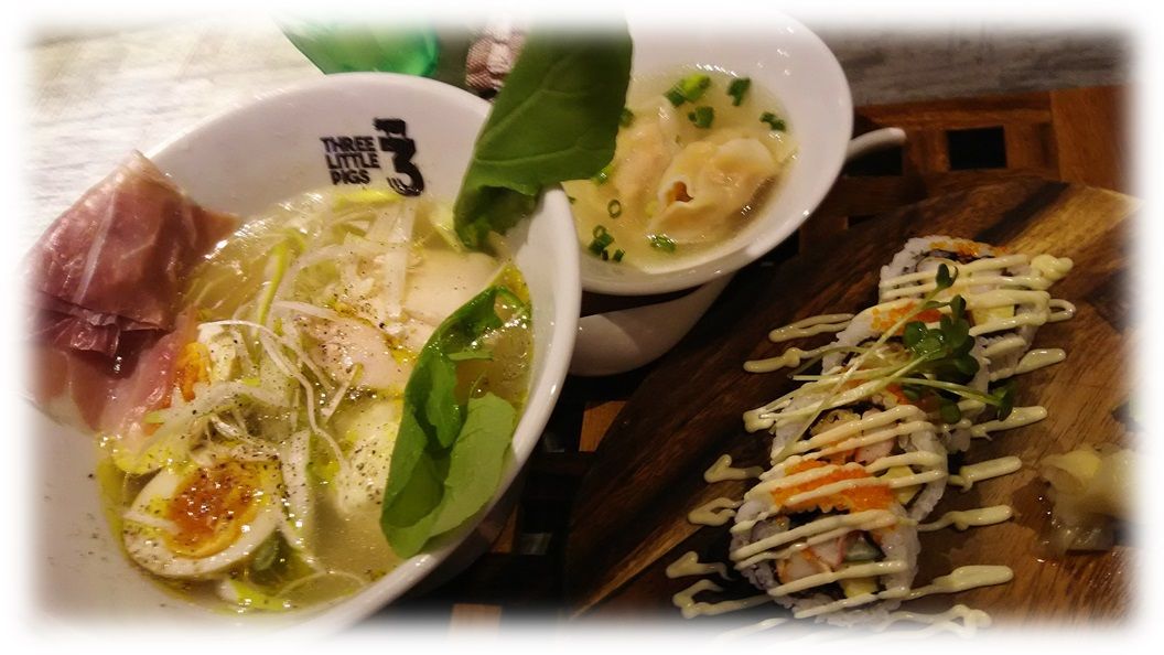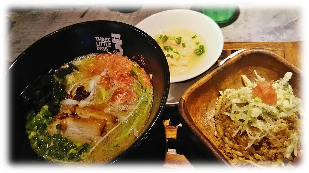 ![]() west coastにある様な店舗外観はその昔の若い頃、自慢の愛車で集った、ダイニングバーでありカフェの趣です。 しかしここは店名そのもの、豚。 豚骨ベースのラーメンが売りのお店、所謂ラーメン屋のイメージとはかけ離れた洒落たお店。 ![]() ペットokとある。 テラス席のみペット同伴可の様です、動物が苦手な方にとっては躾の出来ていないペットと遭遇すると 不愉快に感じるかもしれません。 ![]() 入口に飾られたツリーはとてもラーメン屋とは思えない。 ![]() 若かりし頃こうした店に夜な夜な屯った事はありませんか? ![]() 店舗カウンターに案内されました。 カウンターにもTHREE LITTLE PIGS 店自体が女性を意識した造りなので店内のお客は女性が多く、年齢層は比較的若い印象を受けます。 店内はBGMが流れ、照明も少し落とし落ち着いたバーの雰囲気。 昔は若かったおっさんとおばさんがカウンターでラーメンを頂く、多少の違和感を感じる。 ![]() 酒が並ぶカウンターに餃子のたれ。 ここのシステムは良くわかりませんが、ラーメンを頼むと水餃子とカリフォルニアロールorタコライスが 付いてくる様です。 このたれは水餃子のたれの様です。 おやじは濃厚海老ラーメン+タコライス+水餃子のプレート、かみさんはゴルゴンゾーラチーズラーメン+カリフォルニアロール+水餃子をお願いしました。 ![]() オーダーしてから後悔した、豚押しのお店で海老はないだろうと。 間もなくプレートに乗ったラーメンとタコライス、水餃子のお出ましです。 チャーラーの乗りですね。海老もいるねー。 ちぢれ麵で喉越しが良く、豚骨ベースのスープに海老の風味が漂い、チャーシューはとろっとして美味しかったです。 濃厚なのかというとそれ程でもないような。5点評価で2.8でどうだろうか。 タコライスも水餃子もおいしく頂きました、結構ボリュームがあり満足できます。 この二点は濃い味付けを好むおやじの評価で2.3点かな。 店の雰囲気を加味して総合3点。 ![]() かみさんオーダーのゴルゴンゾーラチーズラーメン+カリフォルニアロール+水餃子。 見た目も女性を意識しているのできれいですね。 お味の方はかみさん曰く、「チーズラーメン」のコメントでした。 もっと濃厚なチーズのイメージが強かったようです。 年代物のアメ車にボードを乗せて訪れたい、そんなオシャレで美味しいラーメン屋さんです。 この雰囲気で酒が飲めないのは運転手としてはつらいところです。 THREE LITTLE PIGS 住所 / 愛知県日進市竹ノ山1-1706 公共交通機関アクセス / 愛知高速交通東部丘陵線リニモ「杁ケ池公園」下車南へ徒歩約30分 お気に入りの記事を「いいね!」で応援しよう