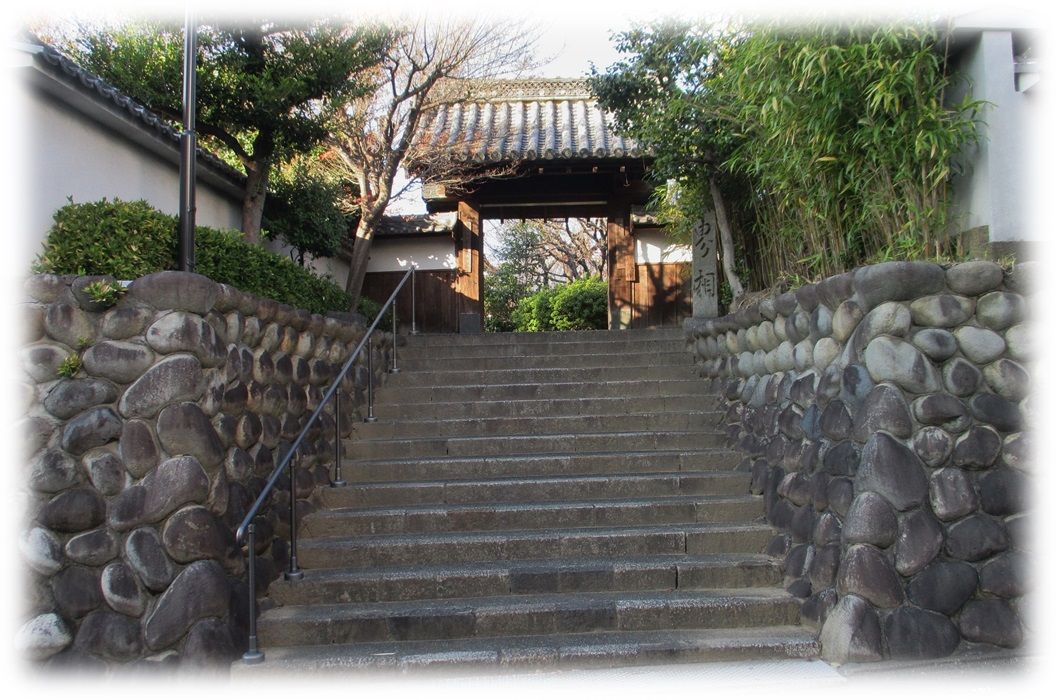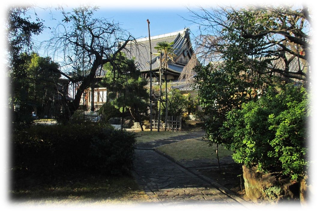 ![]() 御器所八幡宮から西に5分程の所にある曹洞宗のお寺。 西垂れの傾斜地、入り組んだ道筋に鎮座します。 高く積まれた石垣を持つ寺です。 ![]() 浄元寺西側から山門のある東にかけての眺め。 石垣と白壁の高さが傾斜の度合いを物語っています。 ![]() 山門の全景 左にモミジが植えられていますが、既にほぼ落葉し木のシルエットのみになっていました。 ![]() 瓦葺の山門 1747年(延享4)の建立と云われるだけに趣のあるものです。 ![]() 「山門禁葷酒」 大丈夫です、修行の妨げになる匂いを漂わせてはいません。 参拝させて頂きます。 ![]() なかなか重厚な山門から境内と本堂の眺め。 ![]() 石畳が敷かれ参道は左に伸び本堂へと続きます。 ![]() 右手が寺務所の様で、更に右手に庫裏へと続きます。 手前に立派な枝振りの枝垂れ桜が植えられ、春はさぞかし美しい姿を見せてくれるでしょう。 ![]() 境内左の庭にはベンチが置かれ、静かな境内で自分の煩悩と向き合う時間も時には必要かもしれません。 曹洞宗の寺院では座禅会を開かれる所が結構あり、背筋を正し無心で座る座禅はお勧めです。 ![]() 入母屋瓦葺の本堂 この本堂は戦災で焼失してしまったようですが、再建され現在の姿となりました。 ![]() 本堂の山号額 浄元寺はここから少し北東方向に八大龍王社がありますが、その北側にある龍興寺の末寺で、創建は文禄年間(1592~1596年)と云われています。 ![]() 軒先に正に角の様に突きだした隅角と風鐸。 鬼飾りや棟飾りに浄の文字が入っており、青空を背景に浮き立っています。 ![]() 本堂から境内の眺め、境内はそれ程広くはありませんが、手入れされた庭が狭さを感じさせません。 境内西側に安置された馬頭観音、年号は不明。 ![]() 浄元寺の伽藍の中ではこの山門が一番印象深い物です。 時を重ねたものは視線を引き付けるものがあります。 このもみじが赤ければ彩りもよかっただろうが、これも四季の移り変わりの一場面。 令和元年もあと少しで暮れていきます。 浄元寺 山号 / 清沢山 宗派 曹洞宗 本尊 / 聖観世音菩薩 住所 / 名古屋市昭和区村雲町14-17 公共交通機関アクセス / 市営地下鉄鶴舞線「荒畑」駅下車、南西へ徒歩15分程 お気に入りの記事を「いいね!」で応援しよう