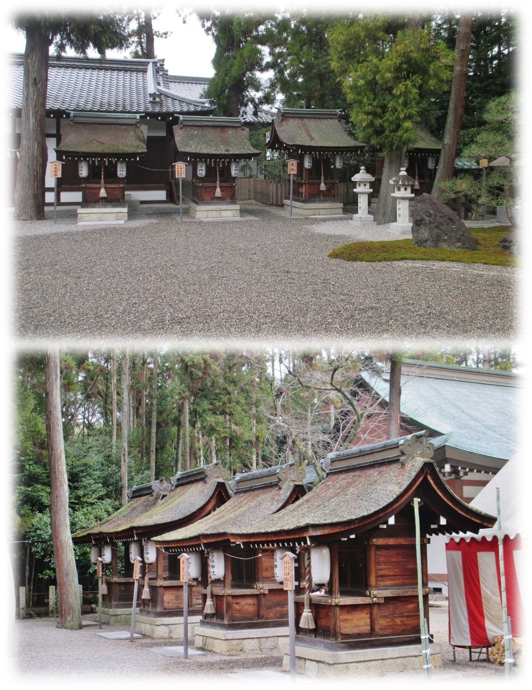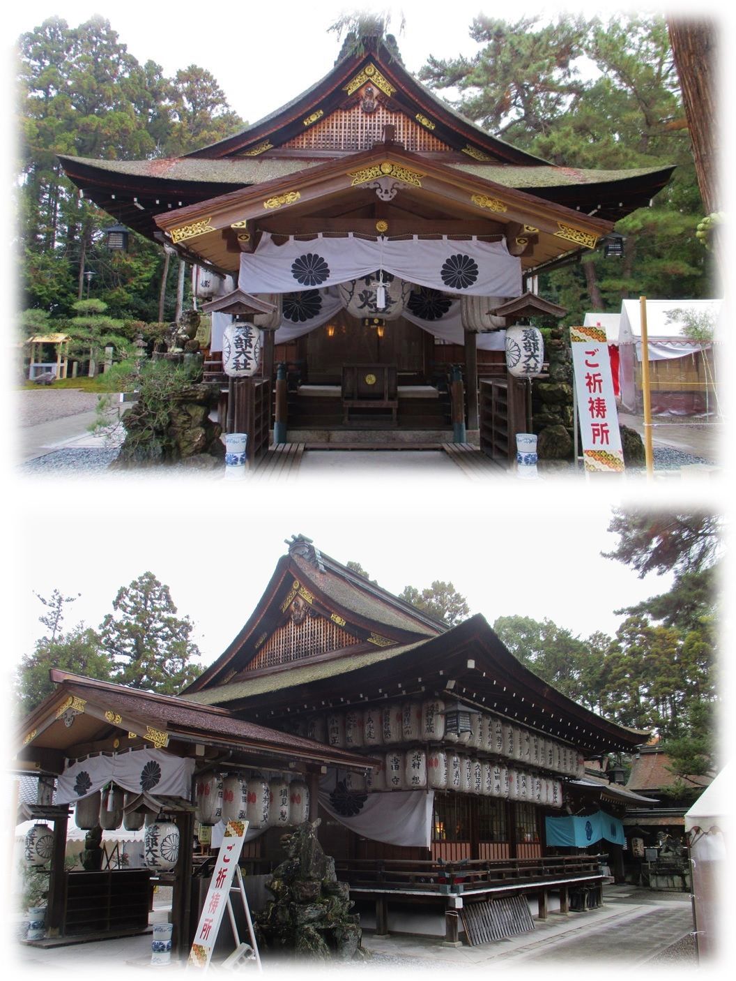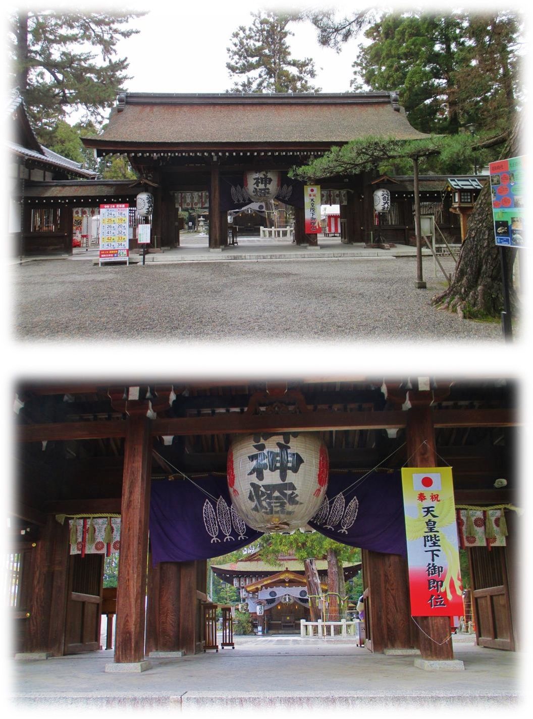 青春18切符を利用し一泊二日で令和元年最後の一之宮巡りへ。 名古屋を8時過ぎの電車に乗り、かみさんが数週間練りに練った滋賀、大阪方面に向かう。 最初の目的地は滋賀県大津市。 JR琵琶湖線「大石」駅から徒歩で25分程東に鎮座する近江国一之宮・建部大社へは11時頃到着。 琵琶湖に注ぐ瀬田川に架かる瀬田唐橋を渡り旧東海道沿いに神社を目指す。 天気は・・・・・よろしくない。 ![]() 瀬田唐橋から県道2号線沿いに建部大社まで10分程、左手に社号標と石鳥居が現れます。 ![]() 参道沿いには灯篭と松並木が真っすぐに続き、その先に社殿は見えません。 迎春準備に大忙し、業者さんの車が目立ちます。 ![]() 松並木の続く 参道は左に折れ、正面にニノ鳥居とその先に神門が見えてきます。 ![]() 鳥居前の由緒書き 「近江一之宮 御祭神 本殿 日本武尊、相殿 天明玉命、権殿 大己貴命 由緒 当社は近江國の一之宮と称えられ、景行天皇四十六年(316)四月神崎群建部御千草嶽に、日本武尊の御神灵と建部大神としてお祀りしたのが創りである。 天武天皇白鳳四年(675)四月に近江国府のあった瀬田の地にお迁し、此の国の守護神として仰ぎ奉られる様になった。 天平勝宝七年(755)には孝徳天皇の詔により大和一の宮大神神社から大己貴命を勧請し権殿に奉斎せられ現在に至っている。 例大祭 四月十五日、船幸祭 八月十七日」 大神神社は奈良県桜井市に鎮座する神社、近くまでは行くけれどなかなか参拝できていない。 かみさんの一之宮巡りの来年の計画には入ってくるだろう。 ![]() 檜皮葺の神門に架けられた門幕、そこに描かれた神紋。 自分には見慣れない神紋です。 門の先の拝殿、その右に3本の杉が見えます、三本杉と云われる御神木。 大己貴命が権殿に祀られた際に一夜にして成長したと伝わるこの杉が神紋になっています。 ![]() 檜皮葺の入母屋妻入り拝殿、趣があっていいものです。 拝殿前の両脇、石を積んだ台座の上から狛犬が拝殿を守護しています。 境内伽藍は本殿の左右に八座が、右に大野神社や稲荷神社が祀られています。 ![]() 拝殿右の絵馬殿。 右側の灯篭は文永七年(1270)庚午と刻まれたもので、滋賀県内では最古と云われる石灯籠で重要文化財に指定されているもの。 ![]() 拝殿の左右に八つの社があり、写真上の上座4社は左から、蔵人頭神社/七掬脛命(料理の神)、行事神社/日本武尊の家臣で吉備臣武彦と大伴連武日、大政所神社/播摩稲日太郎姫命(日本武尊の母)、聖宮神社/景行天皇(日本武尊の父)が祀られています。 写真下の右の下座4社は手前から箭取神社/石占横立・田子之稲置・乳近之稲置、弓取神社/弟彦公、若宮神社/建部稲依別命(日本武尊の子)、藤宮神社/布多遅比売命(日本武尊の妃)が整然と並んでいます。 ![]() 社殿全景。 本殿・相殿は流造で左が本殿で日本武尊、右が相殿で大己貴命をお祀りしています。 透塀で囲われた本殿域には後方へ続く参道があります、そちらから本殿外周を一回りできます。 ![]() 本殿後方の神域にはさざれ石と菊花石が安置され、さざれ石(写真上)の前に立つとセンサーが働き君が代が流れてきます。 菊化石(写真下) 太古の菊の化石‣・・・・ではなくて、玄武岩の母岩に堆積岩が菊の花のように生成されたものです。 まさに菊の化石のような紋様をしています、自然は不思議なものを作るものです。 ![]() 境内右側の小さな池の前に建つ大野神社の鳥居。 古びた小さな狛犬が社を守っています。 草野姫命を祀り、縁結びの神として親しまれているそうです。 左の赤い鳥居は武富稲荷神社。 ![]() 武富稲荷神社全景。 五穀豊穣、家内安全、商売繁盛の神、稲倉魂命を祀る。 ここの狛狐は右耳が欠け痛々しい。 稲荷の左の鳥居は八柱神社。 苔むした流造の小さな社に藤時平、融大臣、事代主命、市杵嶋姫命、素盞男命、豊玉彦命、櫛名多姫命の七柱が祀られています。 ここを守護する狛犬も個性的です。 ![]() 桧山神社遥拝所(桧山神社旧本殿)。 大野神社右手の子山の上に鎮座する。 境内御旅山に鎮座し伊邪那美命、大山祇命、息長足姫命、武内宿祢大臣、住吉大神を祀り、元熊野神社山神社、鞭指神社の祭神を合祀し桧山神社と改称されたもの。 1995年(平成7)の本殿改築に伴い、江戸時代に建立された本殿を解体修理し、この地に移築し遥拝所としたもの。 ![]() 写真上 神宮遥拝所。 かつての御神木、彌栄の松の根が置かれています。 写真下 宝物殿。 神宮遥拝所の左にあり、ここには日本武尊の妃と云われる寄木造の女神座像などが保管されています。 宝物殿を守護するのは白い狛ライオン。 ![]() 建部大社を訪れると出逢う頼もしい面々。 かわいい者もいれば、痛々しい者、凛々しい者など色々とお目にかかることができます。 ![]() 近江國一之宮建部大社 創建 / 316年(景行天皇四十六) 主祭神 / 日本武尊、大己貴命 住所 / 滋賀県大津市神領1-16-1 アクセス / JR琵琶湖線「大石」駅から徒歩で25分 ![]() さて初日2社目に向かうため再び瀬田唐橋を渡りJR石山駅に戻ります、