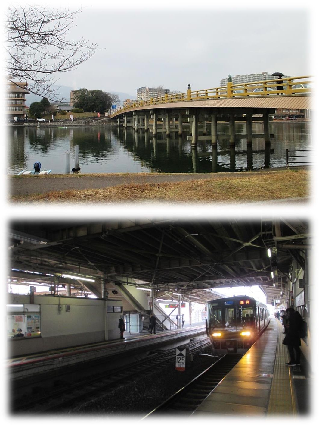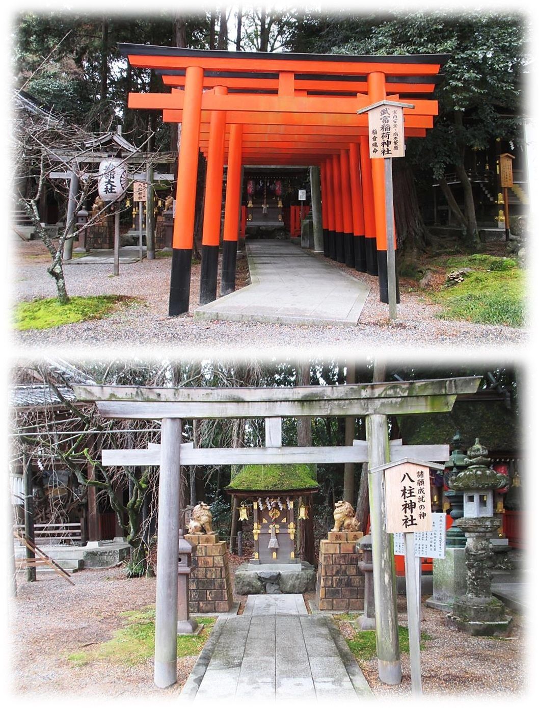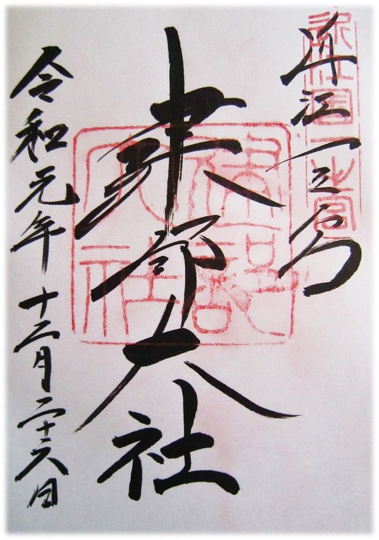 青春18切符を利用し一泊二日で令和元年最後の一之宮巡りへ。 名古屋を8時過ぎの電車に乗り、かみさんが数週間練りに練った滋賀、大阪方面に向かう。 最初の目的地は滋賀県大津市。 JR琵琶湖線「大石」駅から徒歩で25分程東に鎮座する近江国一之宮・建部大社へは11時頃到着。 琵琶湖に注ぐ瀬田川に架かる瀬田唐橋を渡り旧東海道沿いに神社を目指す。 天気は・・・・・よろしくない。 ![]() 瀬田唐橋から県道2号線沿いに建部大社まで10分程、左手に社号標と石鳥居が現れます。 ![]() 参道沿いには灯篭と松並木が真っすぐに続き、その先に社殿は見えません。 迎春準備に大忙し、業者さんの車が目立ちます。 ![]() 松並木の続く 参道は左に折れ、正面にニノ鳥居とその先に神門が見えてきます。 ![]() 鳥居前の由緒書き 「近江一之宮 御祭神 本殿 日本武尊、相殿 天明玉命、権殿 大己貴命 由緒 当社は近江國の一之宮と称えられ、景行天皇四十六年(316)四月神崎群建部御千草嶽に、日本武尊の御神灵と建部大神としてお祀りしたのが創りである。 天武天皇白鳳四年(675)四月に近江国府のあった瀬田の地にお迁し、此の国の守護神として仰ぎ奉られる様になった。 天平勝宝七年(755)には孝徳天皇の詔により大和一の宮大神神社から大己貴命を勧請し権殿に奉斎せられ現在に至っている。 例大祭 四月十五日、船幸祭 八月十七日」 大神神社は奈良県桜井市に鎮座する神社、近くまでは行くけれどなかなか参拝できていない。 かみさんの一之宮巡りの来年の計画には入ってくるだろう。 ![]() 檜皮葺の神門に架けられた門幕、そこに描かれた神紋。 自分には見慣れない神紋です。 門の先の拝殿、その右に3本の杉が見えます、三本杉と云われる御神木。 大己貴命が権殿に祀られた際に一夜にして成長したと伝わるこの杉が神紋になっています。 ![]() 檜皮葺の入母屋妻入り拝殿、趣があっていいものです。 拝殿前の両脇、石を積んだ台座の上から狛犬が拝殿を守護しています。 境内伽藍は本殿の左右に八座が、右に大野神社や稲荷神社が祀られています。 ![]() 拝殿右の絵馬殿。 右側の灯篭は文永七年(1270)庚午と刻まれたもので、滋賀県内では最古と云われる石灯籠で重要文化財に指定されているもの。 ![]() 拝殿の左右に八つの社があり、写真上の上座4社は左から、蔵人頭神社/七掬脛命(料理の神)、行事神社/日本武尊の家臣で吉備臣武彦と大伴連武日、大政所神社/播摩稲日太郎姫命(日本武尊の母)、聖宮神社/景行天皇(日本武尊の父)が祀られています。 写真下の右の下座4社は手前から箭取神社/石占横立・田子之稲置・乳近之稲置、弓取神社/弟彦公、若宮神社/建部稲依別命(日本武尊の子)、藤宮神社/布多遅比売命(日本武尊の妃)が整然と並んでいます。 ![]() 社殿全景。 本殿・相殿は流造で左が本殿で日本武尊、右が相殿で大己貴命をお祀りしています。 透塀で囲われた本殿域には後方へ続く参道があります、そちらから本殿外周を一回りできます。 ![]() 本殿後方の神域にはさざれ石と菊花石が安置され、さざれ石(写真上)の前に立つとセンサーが働き君が代が流れてきます。 菊化石(写真下) 太古の菊の化石‣・・・・ではなくて、玄武岩の母岩に堆積岩が菊の花のように生成されたものです。 まさに菊の化石のような紋様をしています、自然は不思議なものを作るものです。 ![]() 境内右側の小さな池の前に建つ大野神社の鳥居。 古びた小さな狛犬が社を守っています。 草野姫命を祀り、縁結びの神として親しまれているそうです。 左の赤い鳥居は武富稲荷神社。 ![]() 武富稲荷神社全景。 五穀豊穣、家内安全、商売繁盛の神、稲倉魂命を祀る。 ここの狛狐は右耳が欠け痛々しい。 稲荷の左の鳥居は八柱神社。 苔むした流造の小さな社に藤時平、融大臣、事代主命、市杵嶋姫命、素盞男命、豊玉彦命、櫛名多姫命の七柱が祀られています。 ここを守護する狛犬も個性的です。 ![]() 桧山神社遥拝所(桧山神社旧本殿)。 大野神社右手の子山の上に鎮座する。 境内御旅山に鎮座し伊邪那美命、大山祇命、息長足姫命、武内宿祢大臣、住吉大神を祀り、元熊野神社山神社、鞭指神社の祭神を合祀し桧山神社と改称されたもの。 1995年(平成7)の本殿改築に伴い、江戸時代に建立された本殿を解体修理し、この地に移築し遥拝所としたもの。 ![]() 写真上 神宮遥拝所。 かつての御神木、彌栄の松の根が置かれています。 写真下 宝物殿。 神宮遥拝所の左にあり、ここには日本武尊の妃と云われる寄木造の女神座像などが保管されています。 宝物殿を守護するのは白い狛ライオン。 ![]() 建部大社を訪れると出逢う頼もしい面々。 かわいい者もいれば、痛々しい者、凛々しい者など色々とお目にかかることができます。 ![]() 近江國一之宮建部大社 創建 / 316年(景行天皇四十六) 主祭神 / 日本武尊、大己貴命 住所 / 滋賀県大津市神領1-16-1 アクセス / JR琵琶湖線「大石」駅から徒歩で25分 ![]() さて初日2社目に向かうため再び瀬田唐橋を渡りJR石山駅に戻ります、