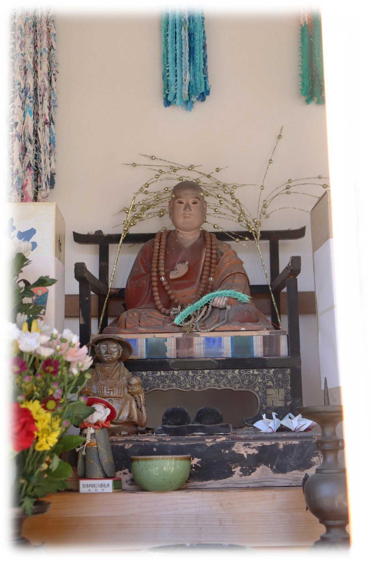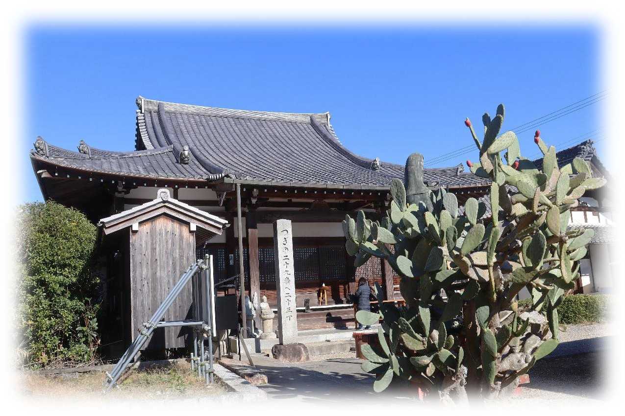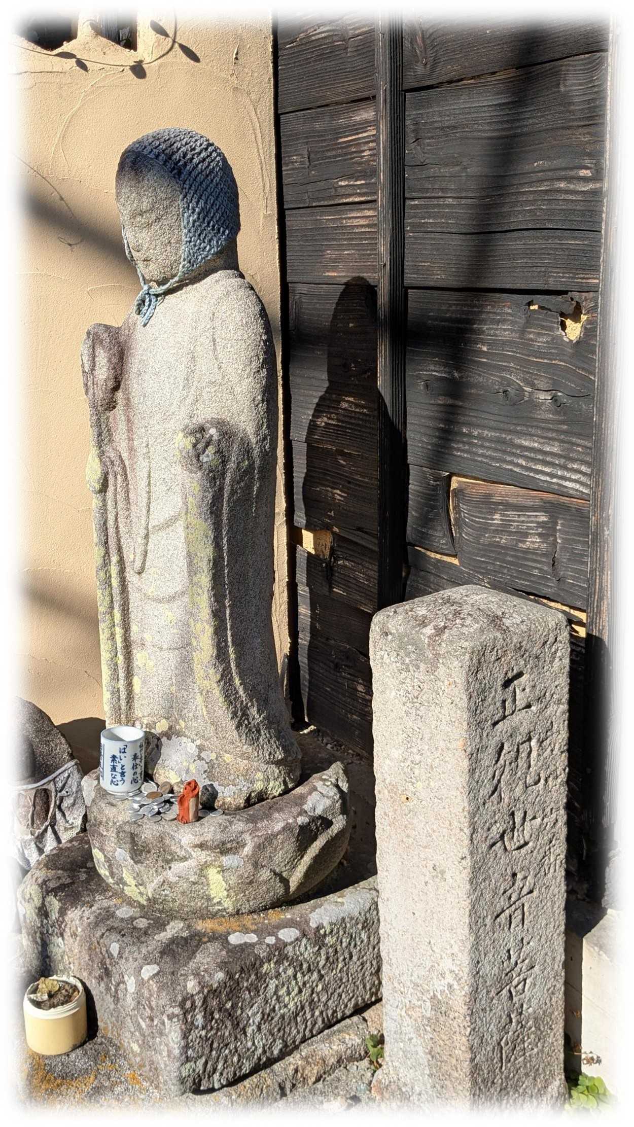 第十回歩いて巡拝知多四国も次の目的地、28番札所 永寿寺が最後となります。 本堂と大師堂の全景。 入母屋瓦葺の本堂と左の小さな堂が大師堂にあたります。 以前は大師堂がある場所に、入母屋瓦葺の薬師堂が建っていましたが火災で焼失し、現在は仮の大師堂に姿を変えています。 現地資料・ガイドブックから纏めた永寿寺の歴史は以下。 『西山浄土宗 浄光山永寿寺 由緒 古い記録によれば、この地にある八幡神社が造営されたのは十世紀初頭の延喜年間とされます。 当時ここは、深い山奥の地。 天正十年(1582)、戦に疲れた丹波福知山の五人の武上がこの地に落ちのびて、山を切り開き、集落を作ったことから、この辺りは通称「切山」と呼ばれるようになったといいます。 寛永元年(1624)に地福寺を合併。 寛政八年(1796)、 十九世慈空観光和向の時に法地へ昇格となりました。 享和三年(1803)本堂・庫裏を造営。 平成六年(1994)には本堂を改修。 同十年、境内が整えられる。 平成三十年(2018)、天保十二年(1842)に造営された薬師堂を焼失。 本尊 阿弥陀如来 別堂 薬師如来(行基菩薩作) 開基 空悦大応上人 開山 空悦大応上人』 尾張志知多郡篇には「永寿寺、切山村にあり、浄光山と号し、西端村西岸寺末寺也」と短く記されただけで、寛永元年以前の記述には出逢わなかった。 当ブログでは、合併された寛永元年(1624)を永寿寺創建とします。 当日は、本堂の戸が閉じられ堂内の様子は見ることができなかったが、大師堂はガラス戸越しに大師像を拝むことができました。 また、記載に現れる八幡神社は、当寺から南に5分程の南知多自動車道高架脇に鎮座するようですが、今回は、ここから北上し河和方向に向かうので、別の機会に立ち寄ってみます。 ![]() 境内のことぶき観音、コンクリート像で作者は不明。 消失した薬師堂はこの像の後方に建っていたようで、現在も礎石が残り、復興の時を待っている。 ![]() 大師堂に安置されている弘法大師像。 いつか新たな薬師堂が再建され、薬師如来像と共に祀られる弘法大師の姿が見られる日も訪れるのではないだろうか。 ![]() 本堂左の三体の石像、右手は天保三年(1832)、中央は寛政十二年(1800)の先人達が残したものです。 ![]() よくしんを ただひとすじにきり山の えいじゅの人は みだのくどくぞ ![]() 門の向かいの道路脇に立つ丁石。 丁石の文字は正確に読み取れないが、正法寺までの距離、廿二丁の文字だけが見えていました。 この丁石から右に向かい、二十九番札所 正法寺までの巡拝道は、かつて知多四国最大の難所といわれました。 巡拝者を苦しめた山越えの道も、今は切り開かれ、車も通れる道路が整備されました。 後開催 第十回歩いて巡拝 知多四国 28番札所 永寿寺 宗派 / 西山浄土宗 創建 / 寛永元年(1624) 開基 / 空悦大応上人 開山 / 空悦大応上人 本尊 / 阿弥陀如来 札所 / 知多四国28番札所 所在地 / 知多郡美浜町豊丘西側35 参拝日 / 2025/12/22 奥之院から永寿寺 / 距離2.7km・徒歩・約40分 関連記事 ・後開催 第十回歩いて巡拝 知多四国 40番札所 普門山影向寺 ・後開催 第十回歩いて巡拝 知多四国 41番札所 西方寺 ・後開催 第十回歩いて巡拝 知多四国 42番札所 瑞岸山 天龍寺 ・後開催 第十回歩いて巡拝 知多四国 43番札所 大慈山 岩屋寺 ・後開催 第十回歩いて巡拝 知多四国 番外霊場 岩屋山 奥之院 お気に入りの記事を「いいね!」で応援しよう