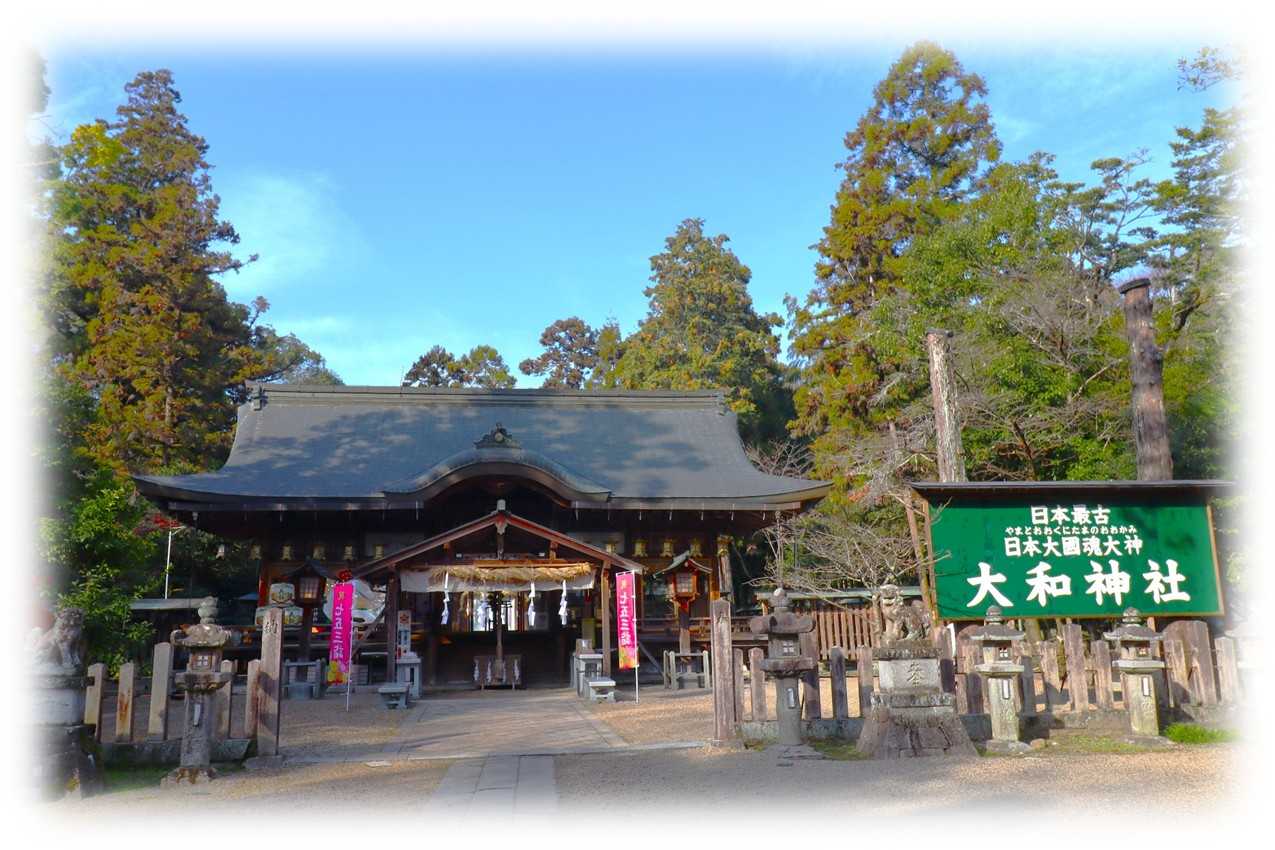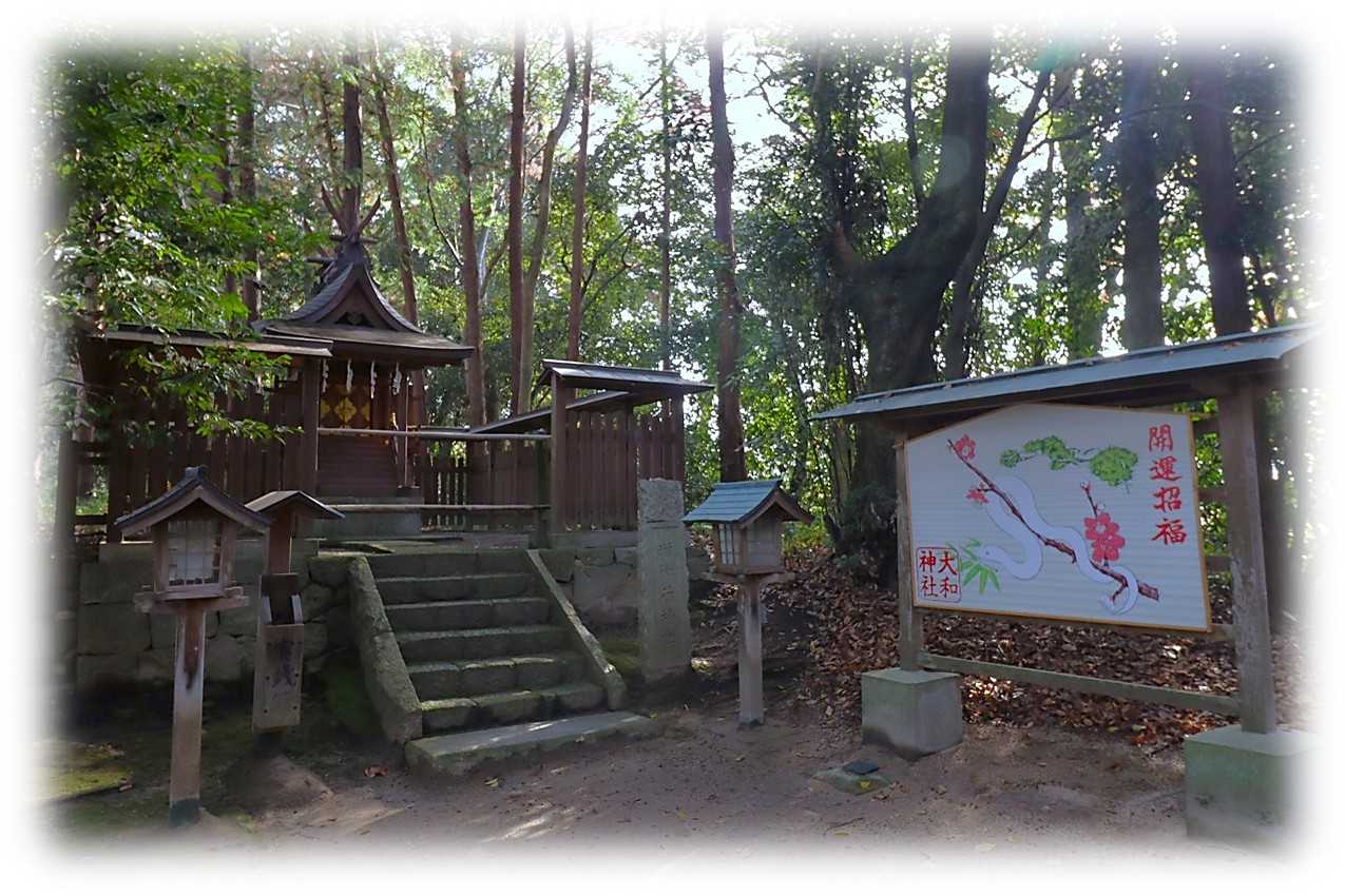 大和(おおやまと)神社。 天理市東部の新泉町、JR桜井線「長柄駅」から歩いて数分、田畑の広がる一角にその杜は鎮座します。 ![]() 駅から続く細道を進むと、写真のように穏やかな田園風景が広がり、やがて道の先に大きく茂る森が姿を現します。 あのこんもりと盛り上がった森こそが大和神社の社叢です。 奈良盆地で見られる丸く盛り上がった森の多くは古墳であり、この社叢も例外ではありません。 境内には大和古墳群のひとつである星塚古墳が佇んでいます。 ![]() 大和神社社頭全景の眺め。 ![]() 左に「官幣大社大和神社」の社号標が立てられ、石造の明神鳥居から続く長い参道は、中ほどの二ノ鳥居を経て社殿に伸びています。 日本最古の歴史を誇る神社とされ、日本書紀に依れば、孝昭天皇元年(BC475)に遡るともされる。 はじまりの地は、現在の鎮座地の東方2kmほどの長岳寺付近とされ、天照大神と日本大國魂大神(倭大国魂神)を祀った。 崇神天皇6年(BC92)、この地に遷され、奈良時代には朝廷の命により派遣される唐遣使が、出発に際して当社へ参詣し、旅の安全を祈願したとされるなど長い歴史を紡いできた。 また、日本が世界に誇った「戦艦大和」の艦名の由来でもあり、艦内には守護神として大和神社が祀られていました。 この長い参道は、奇しくも「戦艦大和」の全長(263m)と同じ長さとされ、大和とは所縁のある神社。 境内には「戦艦大和ゆかりの神社碑」や大和乗組員と護衛艦乗組員の英霊が祖霊社に合祀されています。 ![]() 写真は、長い参道の中ほどに建てられたニノ鳥居の脇に鎮座する増御子神社。 導きの神として知られる国つ神猿田彦大神と芸能の神として知られる天つ神天鈿女命の夫婦神を祀る。 ![]() 社殿に向かう参道右脇に、小高く盛られた場所が星塚古墳。 案内がなければただの小山と見紛うような墳丘で、全長70mの前方後円墳と思われ、発掘調査はされておらず、一説には神武天皇皇后陵とも言われるようです。 県内にはこうした古墳を含め、13,000を超える遺跡があり、発掘調査したくても出来ないのが実情かも知れない。 ![]() 大和神社手水舎。 別段特徴があるものではないか・・・ん?、何か手水鉢に浮かんでいるような。 ![]() その正体は折り鶴、大和らしき船の姿もある、折り鶴が浮かぶ手水は他では記憶がないものです。 ![]() 大和神社社殿全景。 左手に戦艦大和展示室と収蔵庫、右手の授与所の後方が戦艦大和ゆかりの碑と祖霊社が祀られています。 正面の拝殿の左には境内社が集められています。 ![]() 戦艦大和ゆかりの碑と左の社が祖霊社。 ![]() 大和神社と戦艦大和の所縁を記した解説。 戦艦大和に当神社の分霊が祀られ、艦長室には堂本印象画伯の「戦艦大和守護神」と題し、大和神社の3つの本殿と神門を描いたものが掲げられていたという。 1945年4月、大和は天一号作戦のため山口・徳山湾沖を出航し、沖縄海上特攻に向かうが、その直前、呉市周辺で燃えやすい物が陸揚げされ、絵は難を逃れ、今も現存しています。 祖霊社には大和と共に犠牲となった2736柱の英霊が祀られています。 ![]() 境内左の戦艦大和展示室と収蔵庫、右手の朱の鳥居は高龗神社。 ![]() 大和神社拝殿全景。 ![]() 【境内由緒から抜粋】 『大和大明神、日本最古の神社 大和神社由緒。 御祭神 日本大国魂大神(中央)、八千戈大神(向右)、御年大神(向左) 御例祭 四月一日(ちゃんちゃん祭) 社格 旧官幣大社(橘の森鎮座) 御由緒 まほろばなる大和平野に長い森を列ねて鎮座する神々は、第十代崇神天皇六年(BC92)まで皇居内に天照大神と共に奉斉されていた大地主に坐します。 皇女 浮名城入姫命により大和郷(現地)に移されたのが当神社の創建。 往古よりわが国に文化・産業をもたらした遣唐使も交通安全の祈願をされ、万葉集「好去好来」にうたわれています。 また、戦中は世界最大最強を誇る 戦艦大和の守護神として祀られました。 御神徳 交通安全、土木建築工事起工安全、厄除け、家内繁栄同艦の伊藤整一命外は祖霊社に合祀されています。 鎮座地 天理市新泉町星山306』 【神社本庁】 『当神社の主神は、日本の全国土の地主神に坐します。 上古、伊勢神宮に坐す天照大神と共に宮中にて親祭され給ひしが、第十代崇神天皇は御神威を畏み給ひ、同6年 (2千数十年前) 当神社の主神を市磯邑に遷御遊ばされ、皇女渟名城入姫を斎主として祀らしめ給う。 延喜式に大社大和坐大国魂神社3座とある。 斯様に尊い御由緒は類まれなところで、御神威は伊勢神宮に次ぎ、御神封も亦大和を始め尾張、武蔵、常陸、安芸の6カ国に於いて327戸に及び、境内も64ヘクタールの広大なりし由にて、久しい間御社頭も隆盛を極めたと、古記録に見ゆる。』 大和神社は長い歴史の中で幾度か火災により焼失しています。 【大和神社年表より抜粋】 『永久六年(1118)の火災を境に衰えていき、天正の兵火(1583)の火災で神領の書類をすべて焼失、江戸期には、境内東西四町、南北三町の樹木鬱蒼たる広い神域を保持するのみで、