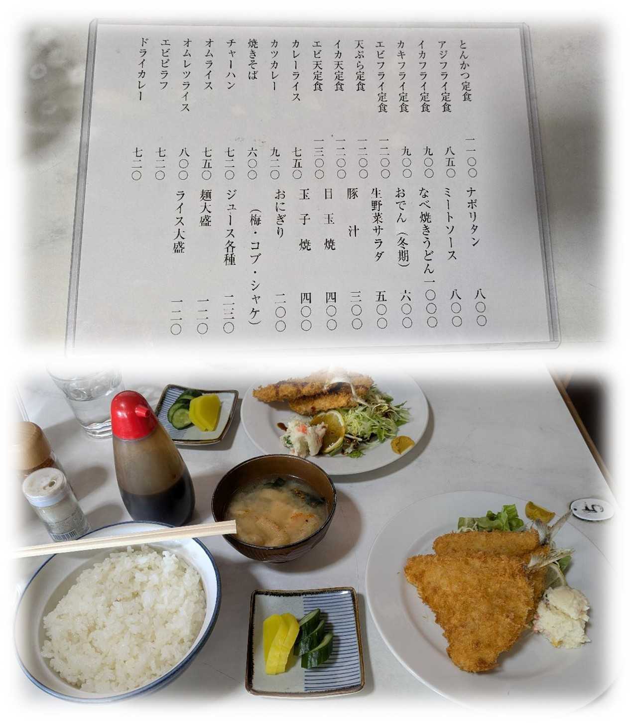 こちらも昭和の風情漂う食堂で、値段の割に美味しいお店。
