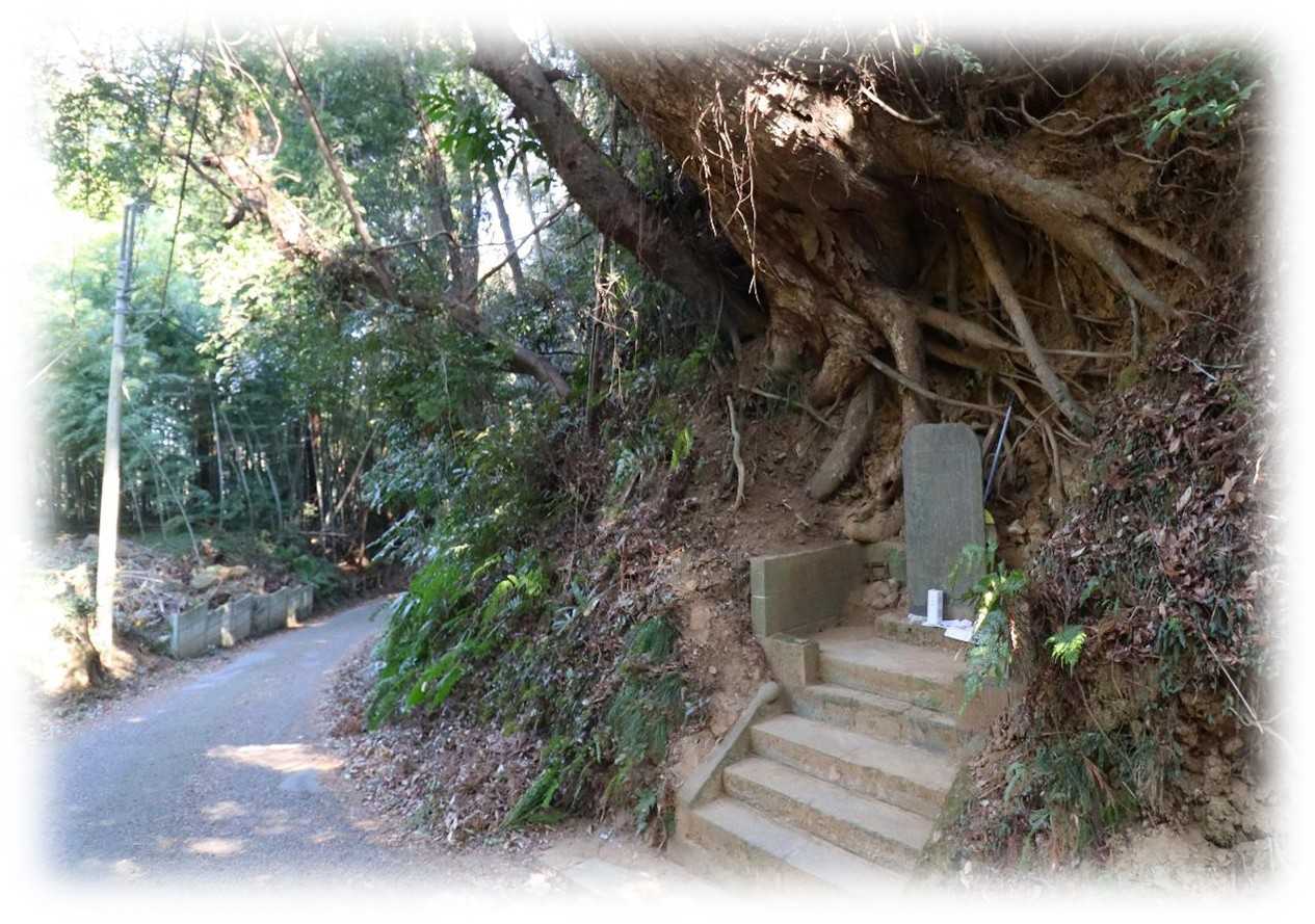 大坂の井の先に大きな樹があり、その下に道祖神が祀られています。