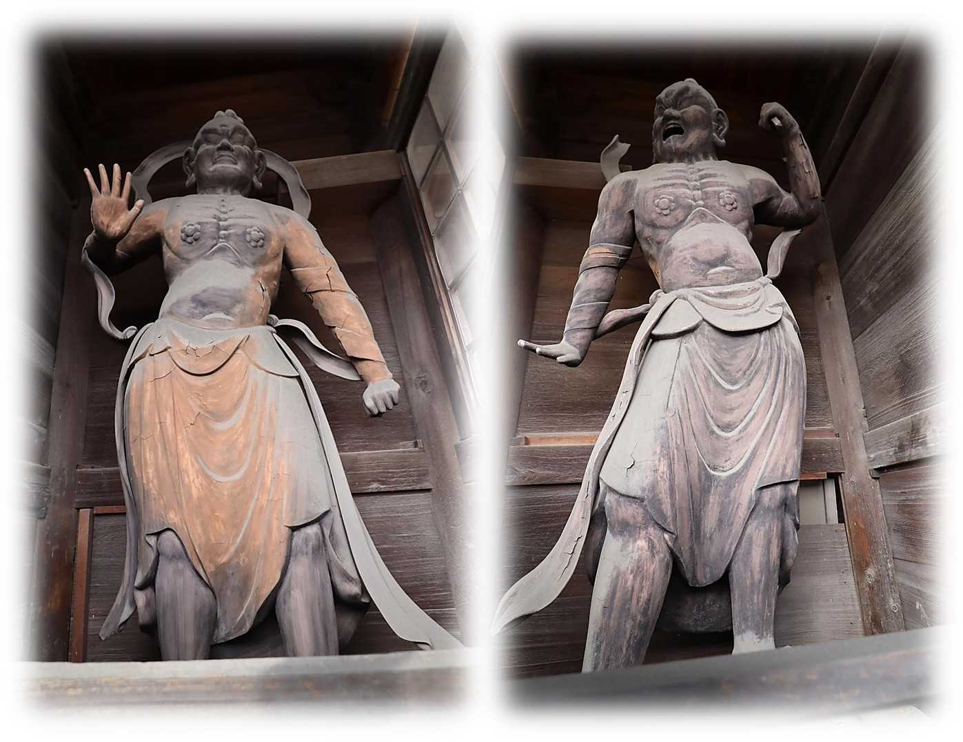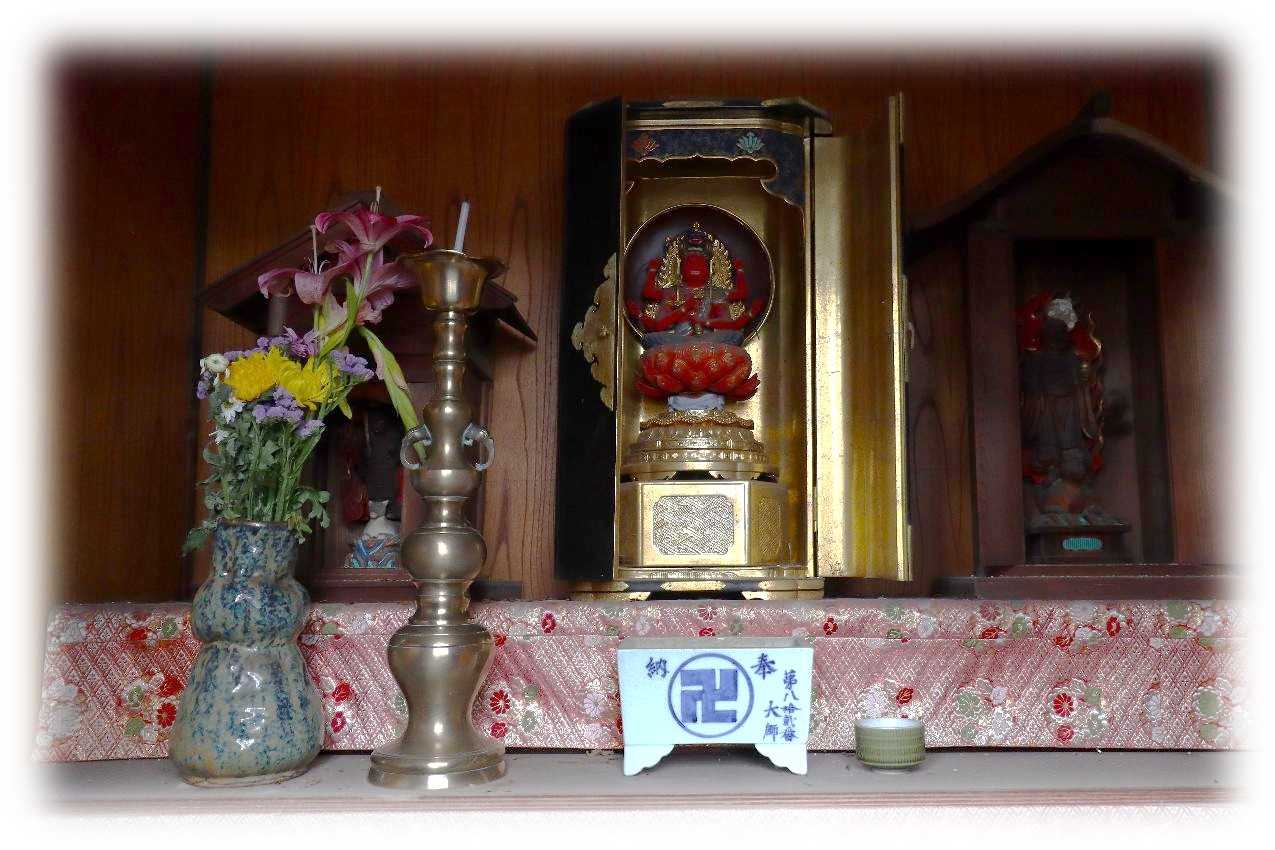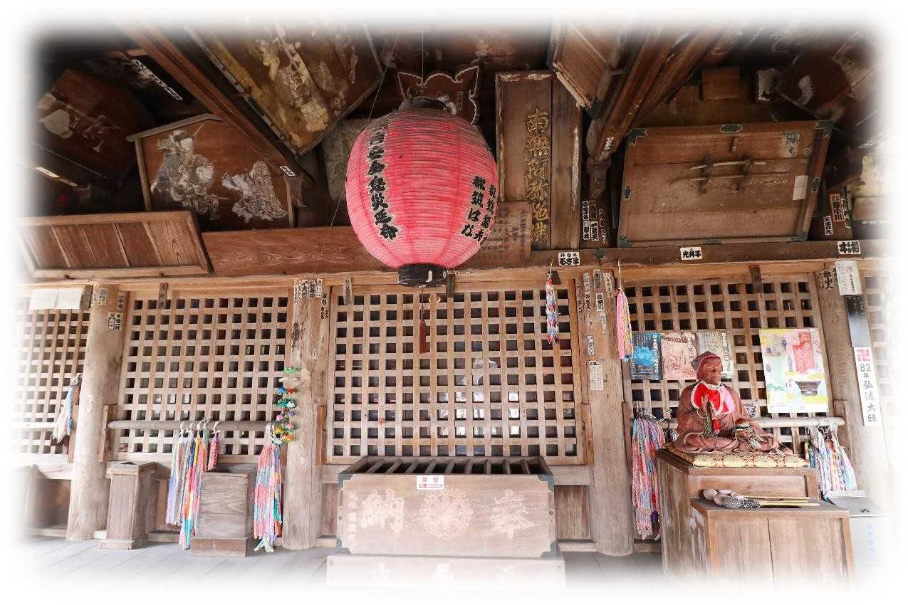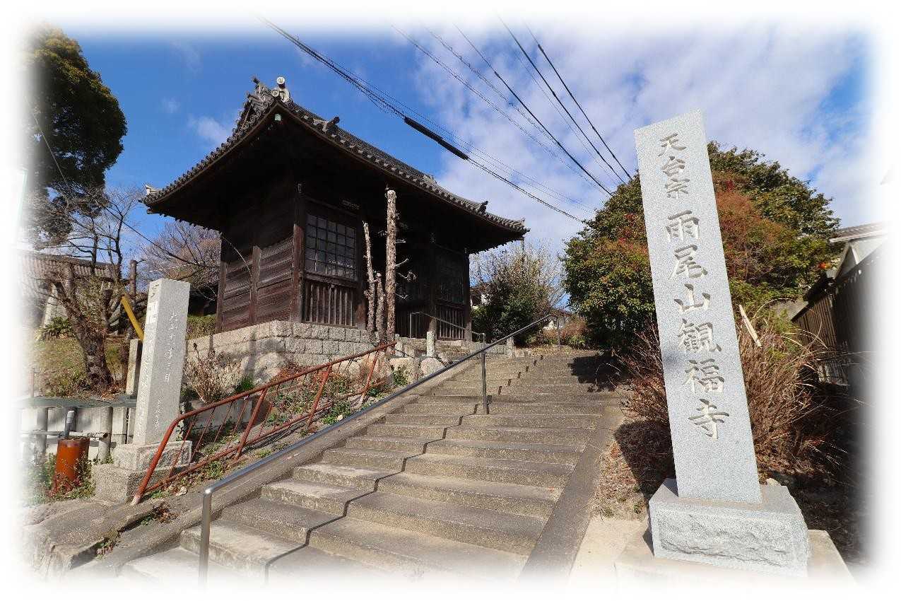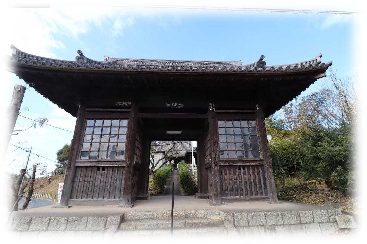 2月17日(火)、後開催で第十ニ回 歩いて巡拝 知多四国を巡ってきました。 ![]() 上が第十ニ回後開催のコースマップ。 スタートは名鉄常滑線太田川駅。 駅前から東に向かい➡82番札所観福寺➡83番札所弥勒寺➡84番札所玄猷寺➡85番札所清水寺➡86番札所観音寺➡名鉄常滑線聚楽園駅をゴールとするもの。 コースは全体に比較的フラットで全長9km、五つの札所を巡拝するもの。 まずは駅から南東へ1.2kmほど先の小高い丘に鎮座する82番札所観福寺を目指す。 ![]() 丘の南側に仁王門を構える八十二番札所・雨尾山観福寺の門前の眺め。 車の場合、この門前の少し左手前の上り坂を進むと本堂前に至ります。 鎮座地の大田町天神下ノ上は、周囲よりわずかに高い標高10m前後の微高地に位置しています。 この高まりは、知多丘陵の裾野が大田川の浸食と堆積によって舌状に残った地形で、古くから洪水に強い安全な場所として人々が集落を営み、寺院が建立される基盤となりました。 ![]() 知多四国の札所の中でも、観福寺はとくに立派な仁王門を備えている寺院として知られています。 以下は『東海市史 通史編』(1990)をもとに加筆した由緒の概要です。 雨尾山観福寺は、大宝二年(701)に行基が知多三山(南知多の岩屋寺・常滑の高讃寺)を開いた際の一山と伝えられており、この地方の古刹とされています。 開山後しばらくは荒廃していたようですが、宝徳二年(1450)に慶山によって再興され、十二坊を備える大伽藍が整えられたと伝わっています。 その後、慶長年間(1596〜1615)に火災に遭いましたが、慶安年間(1648〜1652)に再建され、寛文五年(1665)には尾張藩主・徳川光友の寄進により現在の本堂が再建されたとされています。 仁王門は、棟札によると延宝二年(1674)の建立とされ、入母屋造・本瓦葺きの堂々とした門です。 金剛力士像の前後には金剛柵が設けられ、上部を竹格子で囲む構造になっており、寺の格式を示すものと考えられます。 本堂内陣には、国・県指定文化財の厨子と須弥壇が安置されています。 厨子は鎌倉時代の手法を伝える柱間一間四方の入母屋造とされ、本尊の十一面観世音菩薩立像は藤原期の作と伝えられています。 脇侍の毘沙門天立像・不動明王立像は市指定文化財で、十七年に一度御開帳が行われます。 このほか、両界曼荼羅、涅槃図、三千仏図など十四点が文化財に指定されています。 昭和三十四年の伊勢湾台風では中門が倒壊し、客殿・本堂・庫裡にも大きな被害が出ましたが、昭和四十年に現在の姿へと復旧したとされています。 ![]() 仁王門前には、文化六年(1809)亮山阿闍梨が知多四国開創の記念にお手植えされたとされる紅白の椿があり、その後共に桧の芽が出てくるという奇跡が起こり、現在も枝を広げています。 ![]() 仁王門の両の間に安置されている金剛力士像。 作者や年代は定かではないが、凛々しさのなかに力強さが漂う均整の取れた像で、門が延宝二年(1674)ということから、その時代のものだろうか。 ![]() 仁王門から緩やかに上る参道は、両脇に生垣が続き正面の本堂に至ります。 本堂は入母屋瓦葺で桁行・梁行共に五間のもので正面に一間向拝が付くもの。 ![]() 八十二番札所 雨尾山 観福寺本堂脇の文化財解説。 ![]() 本堂は江戸前期に建造されたもので、県の文化財に指定されており、多くの文化財を所蔵している。 ![]() 本堂外陣入口の眺め、額は・・・観音堂と読めばいいのかな。 ![]() 外陣と内陣は格子戸で仕切られ、外陣天井には多くの奉納額が掛けられています。 内陣は良く見通せませんが外陣に木札が掛かっており、中央に本尊の十一面観音、脇侍の右が不動明王、左が毘沙門天、本尊右に六観音、一番右に弘法大師、本尊の左に六地蔵、その左に行基菩薩が安置されているようです。 ![]() 薄暗い内陣中央の一枚、ピントも甘いがお前立の十一面観音像らしき姿が現れました。 17年に一度の御開帳、前回がいつだったか調べがつかず、次回御開帳は問い合わせるのが一番確かかもしれない。 ![]() 軒先が優雅に広がる本堂の眺め。 ![]() 本堂右側のこの建物は、幟からすると観音堂と思われます。 ![]() 手水舎。 ![]() 本堂左側に三十三観音と方形の堂。 ![]() 内部には中央に愛染明王、左右には像はコントラストを変えると火炎光背が見えるので不動明王だろう。 ![]() ぼたいしん おこりてきたの かんふくじ にせのあんらく このほかになし (菩提心 起りて木田の観福寺 二世の安楽 この外になし) 第十ニ回後開催 歩いて巡拝 知多四国 八十二番札所 雨尾山 観福寺 宗派 / 天台宗 本尊 / 十一面観世音菩薩 創建 / 大宝二(702) 開基 / 行基菩薩 札所 / 知多四国霊場82番札所、知多西国三十三所霊場21番札所 所在地 / 東海市大田町天神下ノ上5 参拝日 / 2026/02/17 太田川駅から観福寺 / 名鉄常滑線太田川駅から南東へ1.2km、徒歩20分ほど。 関連記事 お気に入りの記事を「いいね!」で応援しよう