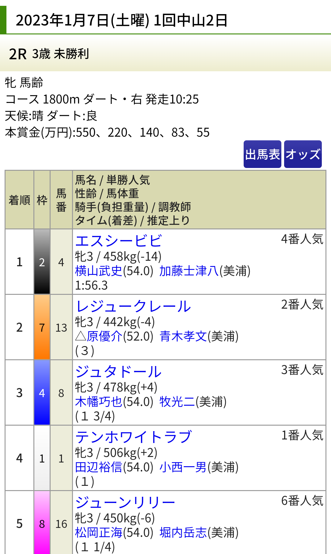 去年のパターンで言うと、カラー馬名は前半の中山!
