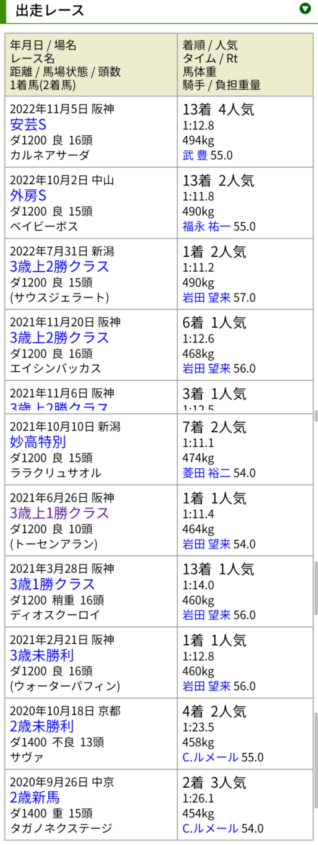 開催して良かった〜👍👍と、思うのは私だけではないでしょうね(≧∇≦)b 初めから開催予定だった中京に注目です。 メインは伊賀ステークス ![]() この馬、前走13着 ![]() 二走前も13着 だから人気がありません。 でも、これは今回のオッズを上がるためにわざと負けたくさい。 ![]() いつも人気になっていると言うことは、馬体はそれなりに良いんですよ。 で、なぜ今回が勝負なのか? それは‥‥ 年明け1戦目に勝つからなのです。 未勝利脱出の2021.2.21 3勝目の2022.7.31 そして今日が、年明け初戦なのです。 さて、どうなるでしょう 結果 なんてことはない、14着┐(‘~`;)┌ お気に入りの記事を「いいね!」で応援しよう