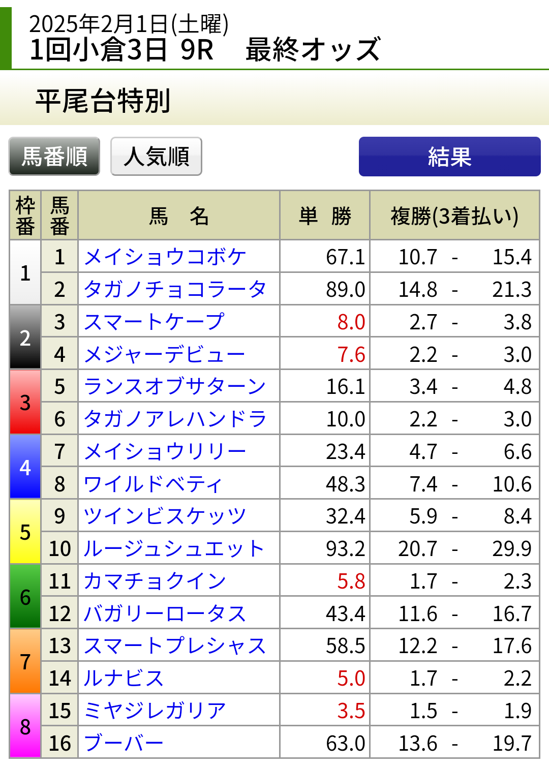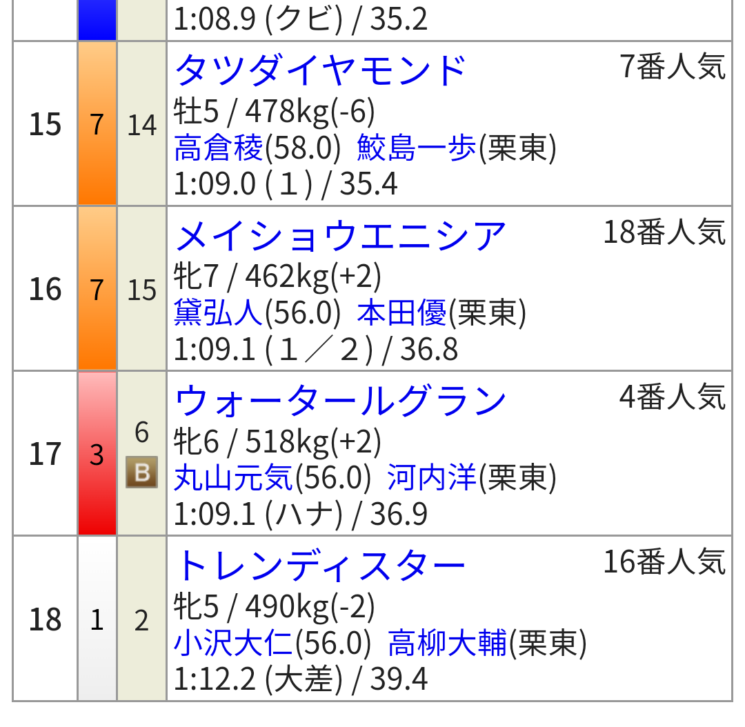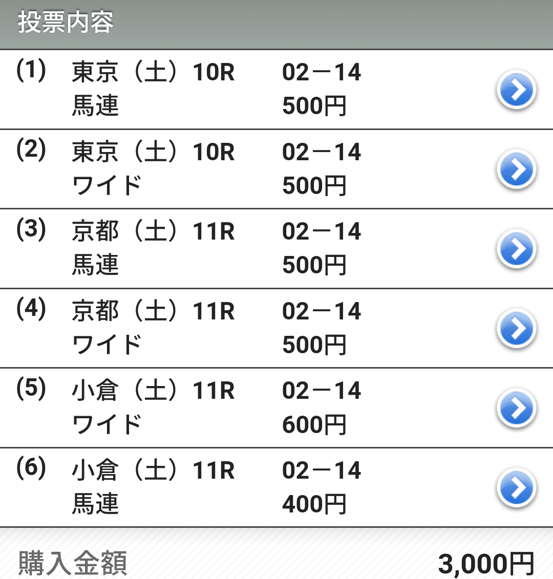 バレンタインと言えば、チョコ🍫 そんなチョコ馬名を探してみました。 いた。今月初めに走っていました。 ![]() ②タガノチョコラータ ②に入ってるって事は2月の②を表しています。 それなら相手は⑭しかないですよね。 ![]() こんなん買ってみました。 当てて高級チョコでも買うか(笑) 《結果》 東京10レース ![]() 6着と9着 京都11レース ![]() 13着と14着 小倉11レース ![]() 15着とビリ 全く話になりませんでした。 明日に繰り越し?? そんなこともないだろうな(泣) お気に入りの記事を「いいね!」で応援しよう