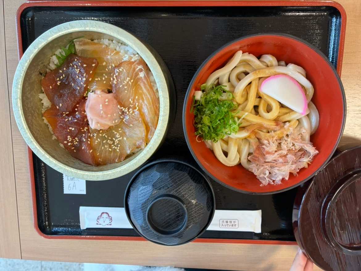 岩戸屋でランチ(伊勢うどん・手こね寿司) お昼は岩戸屋さんで、 伊勢うどんと手こね寿司を注文しました。 ▼ 伊勢うどん 伊勢うどんにしては、 少しコシがあるタイプ。 いわゆる「やわらかい伊勢うどん」の イメージとは少し違いました。 味付けは醤油ベースなので、 伊勢うどんを初めて食べる人には 食べやすい味だと思います。 ただ、 濃いめの味が苦手な人は 好みが分かれるかもしれません。 ▼ 手こね寿司 味自体は美味しかったです。 ただ、お米の水分がやや少なめで、 腹もちがかなり良い印象。 あっさり食べたい人より、 「しっかり食べたい人」向けかな? と感じました。 これも正直、 好みは分かれそうです。