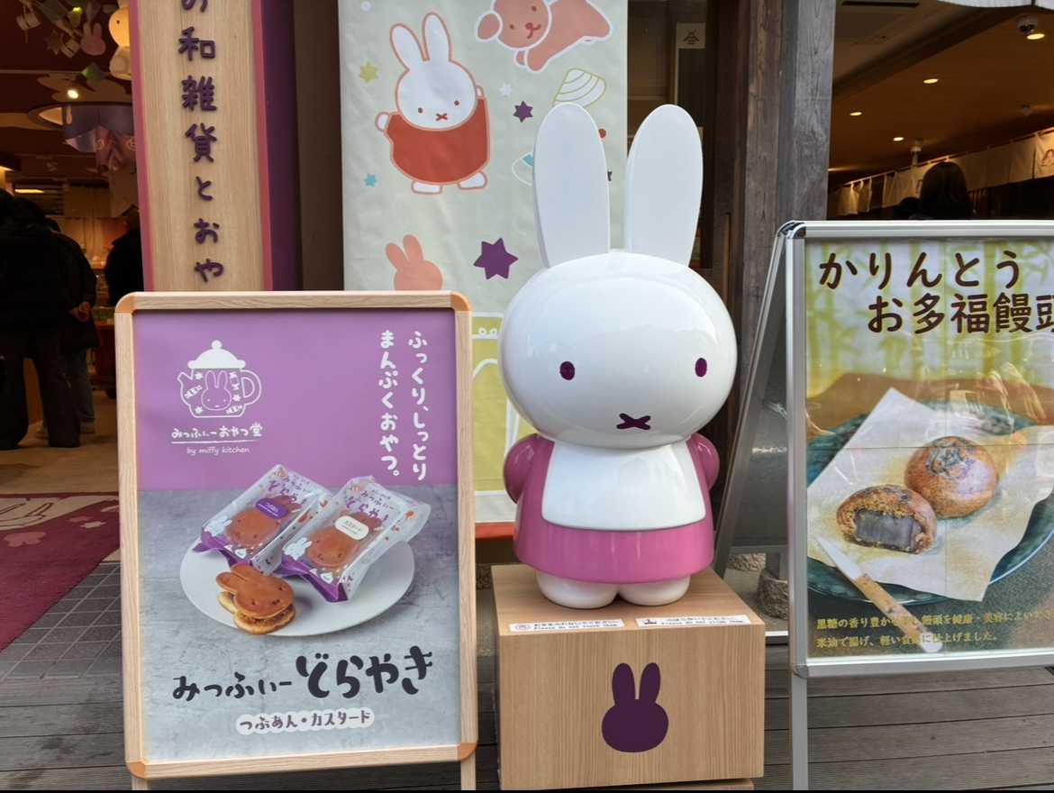 みっふぃーおやつ堂で寄り道 ごはんのあと、 みっふぃーおやつ堂に寄り道。 お菓子を買って、 ついミッフィーの撮影会が始まりました! 店内もかわいくて、 ちょっとした休憩や お土産探しにはちょうどいいお店です