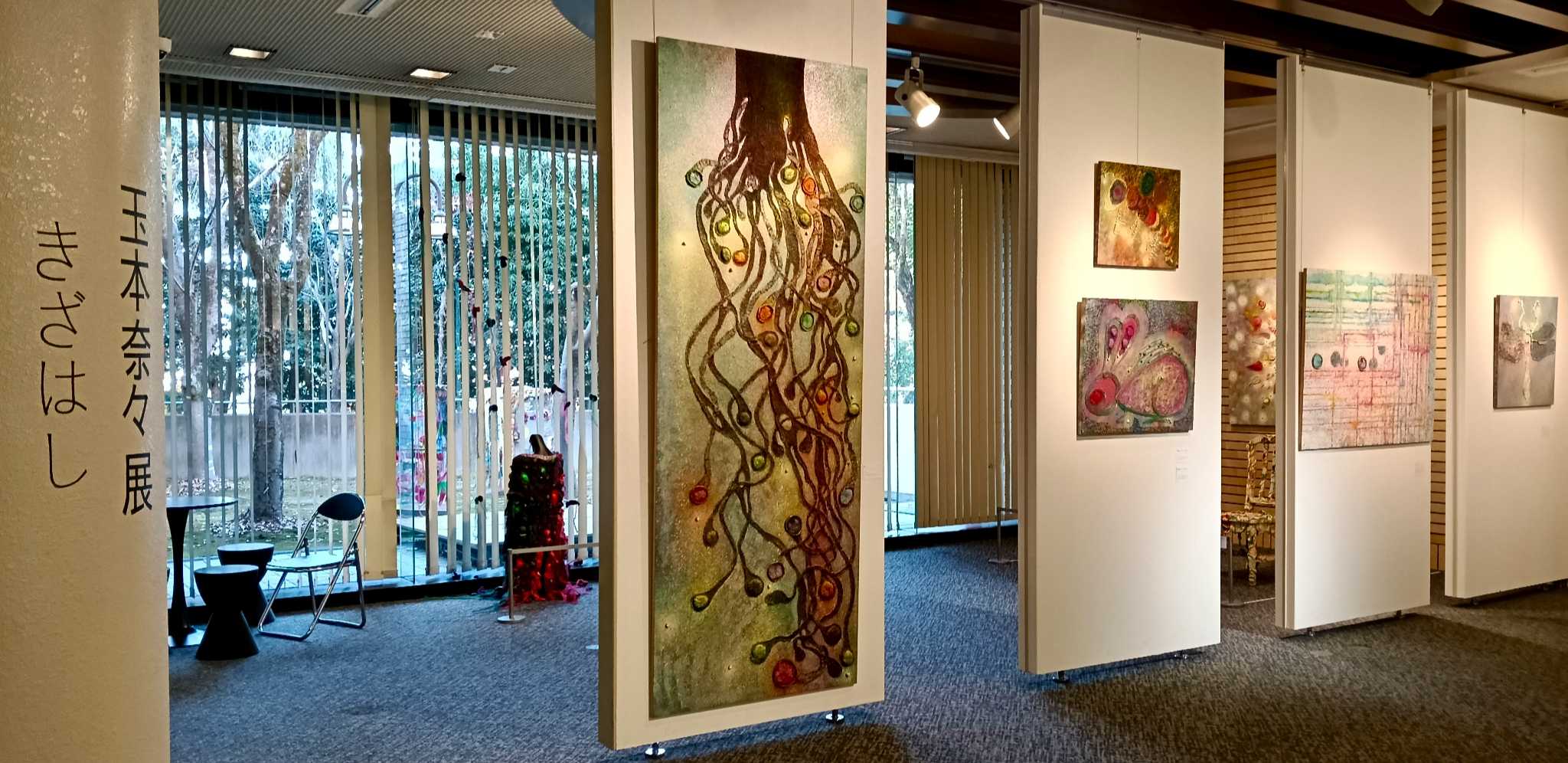 玉本奈々は、繊維造形物によるレリーフ状絵画と立体、インスタレーションで知られる気鋭の現代美術家/著者。ミシン糸が縫い込まれ、古木の樹皮か珊瑚のような質感のオブジェと化した布等塊と、飛沫状の着彩、樹脂による凸状波紋など、豊穣な物質的マチエールが特徴。近年では、色彩評価が高まる。ワークショップを随時開催。 《企画事業ならびに作品に関するお問い合わせ》 エヌティエム.イント ntm.int7@gmail.com