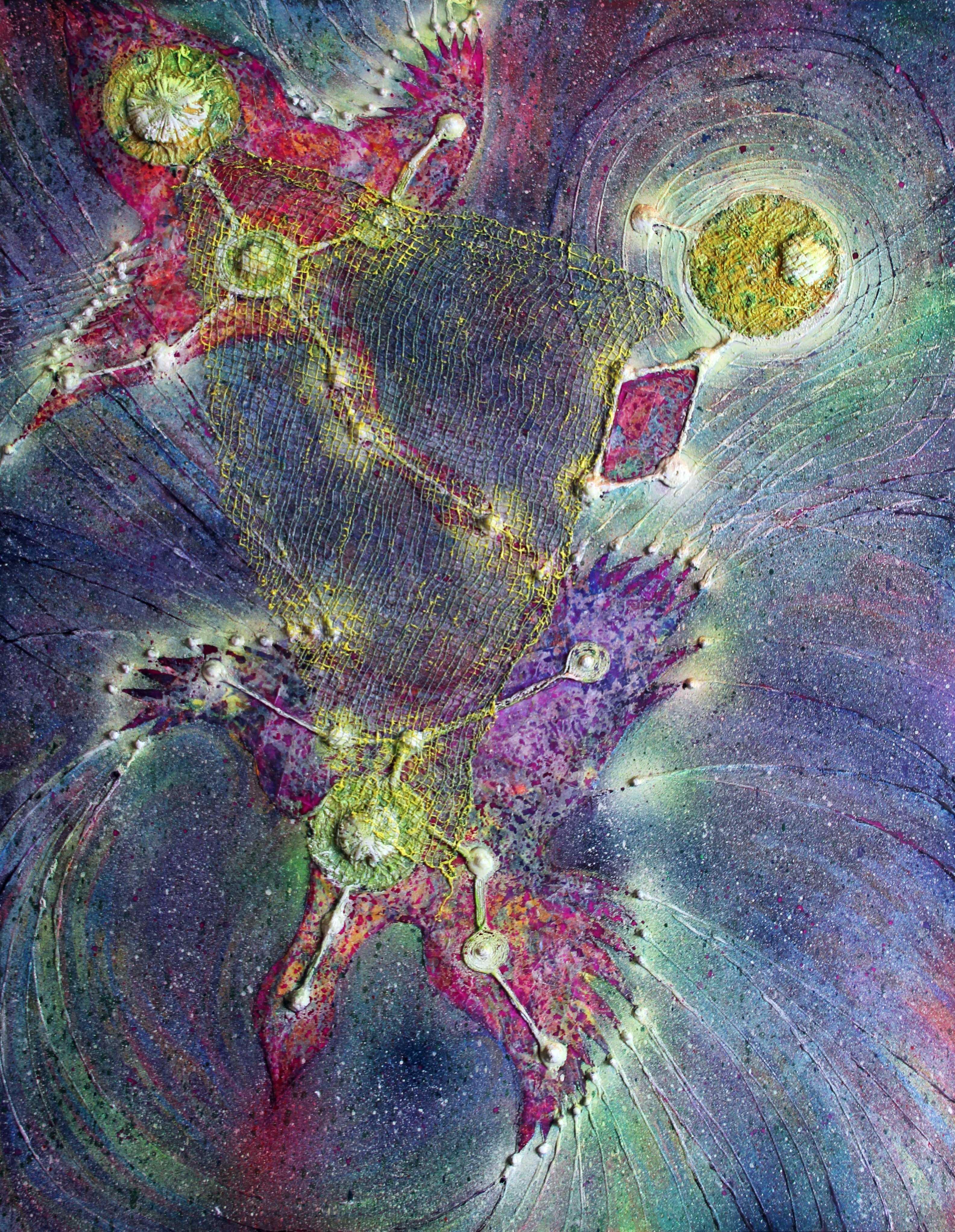 玉本奈々は、繊維造形物によるレリーフ状絵画と立体、インスタレーションで知られる気鋭の現代美術家/著者。ミシン糸が縫い込まれ、古木の樹皮か珊瑚のような質感のオブジェと化した布等塊と、飛沫状の着彩、樹脂による凸状波紋など、豊穣な物質的マチエールが特徴。近年では、色彩評価が高まる。ワークショップを随時開催。 《企画事業ならびに作品に関するお問い合わせ》 エヌティエム.イント ntm.int7@gmail.com