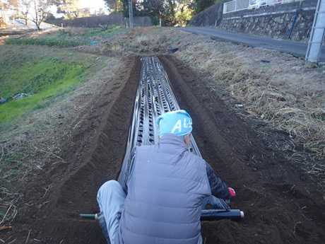 サトイモの種芋を植え付けたのは~3月上旬頃 サトイモの発芽を確認したのは~5月中旬頃 第1回目の草刈りをしたのは~7月下旬頃 第2回目の草刈りをしたのは~8月下旬頃 第3回目の草刈りをしたのは~10月初旬頃 今年も酷暑が続き~サトイモは貧相な姿となっています。 試し掘りする気にもなりません。(´;ω;`)ウッ… ![]() <秋ジャガイモ> ![]() 秋ジャガイモの種芋を植え付けたのは~ちょっと遅い10月初旬頃 発芽確認&1回目の芽かき&土寄せをしたのは~10月下旬頃 2回目の芽かき&土寄せをしたのは~11月中旬頃 <秋ジャガイモの収穫時期の目安> 秋ジャガイモは、植え付けから約3ヶ月後、葉や茎が枯れ始めたら収穫可能。 地域によっては12月頃に茎葉が完全に枯れるのを待って収穫します。 <霜と収穫のタイミング> 一度の霜: ジャガイモは一度の霜には耐えられます。 二度以上の霜: イモが凍って傷む可能性があるため、避けるべきです。 葉や茎がしおれた場合: 霜で葉や茎がしおれてしまったら、すぐに収穫しましょう。 地表面の凍結: 地域によっては地表面近くが氷点下になることがあるため、 イモの凍結を避けるために早めに収穫します。 ![]() 今回は・・周囲に、耕運機をかけてもらいました。 これで雑草対策はバッチリかな?(;^ω^) ![]() <畝立てマルチ張り~> ![]() 耕運機をかけてもらったら~ その後は、畝立て&マルチ張り作業をしてもらいました。