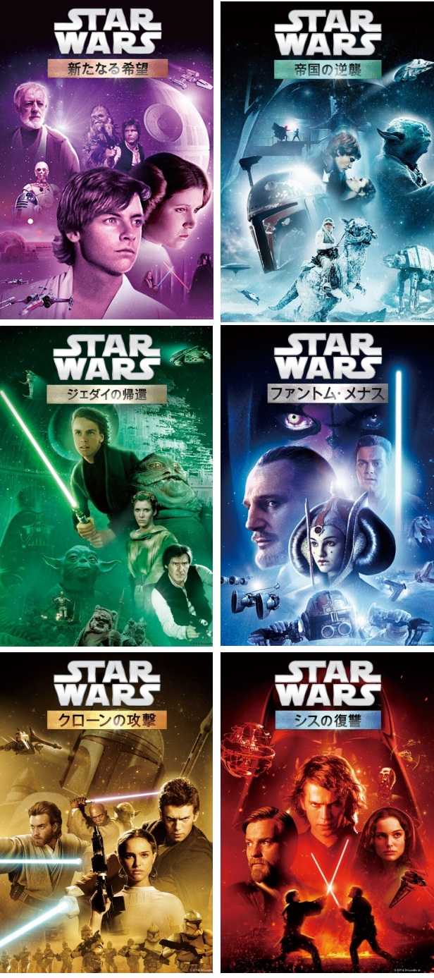左上から「エピソード4:新たなる希望」1978年日本公開「エピソード5:帝国の逆襲…